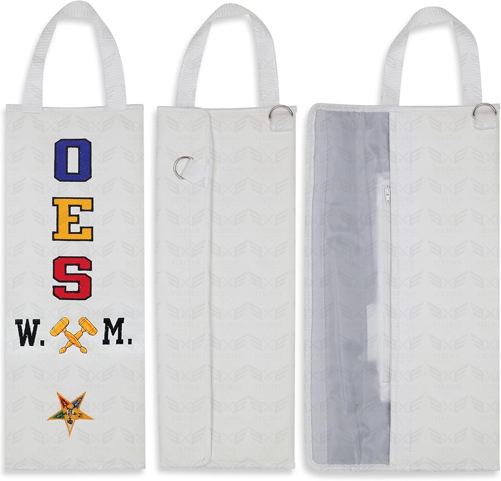 حقيبة وشاح Worthy Matron OES - مطرزة W.M. حقيبة حمل Regalia - جلد أبيض مع بطانة من الساتان وحزام كتف قابل للتعديل