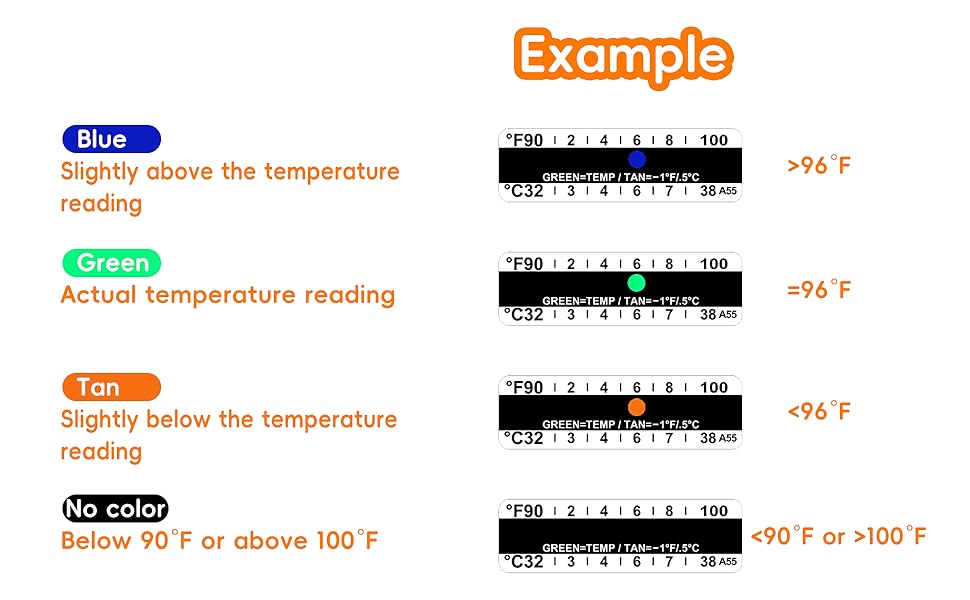 Accurate & Efficient - The temperature strip provide real-time tracking; Fast and accurate readings of temperature within the range of 90°F to 100°F; Comes with 10 strips, ample for testing and practice needs