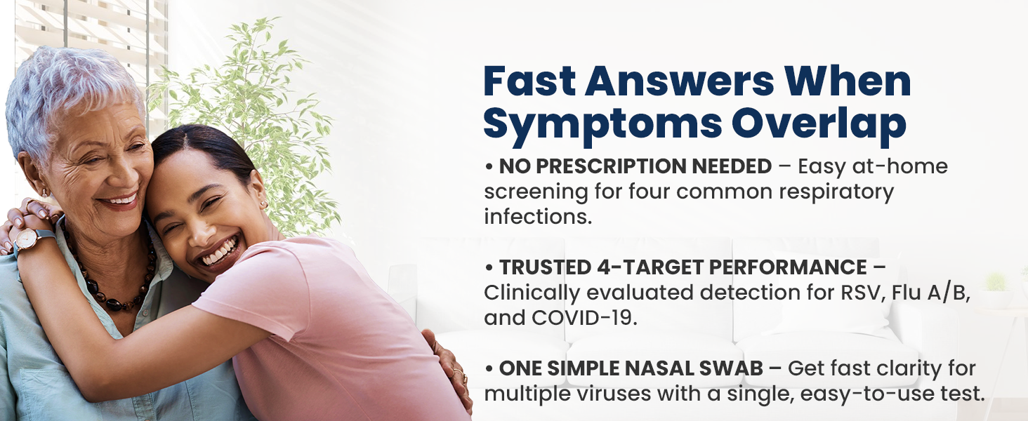 4 TESTS IN 1: One easy test, four results; single nasal swab screens for the most common respiratory infections—no separate kits required