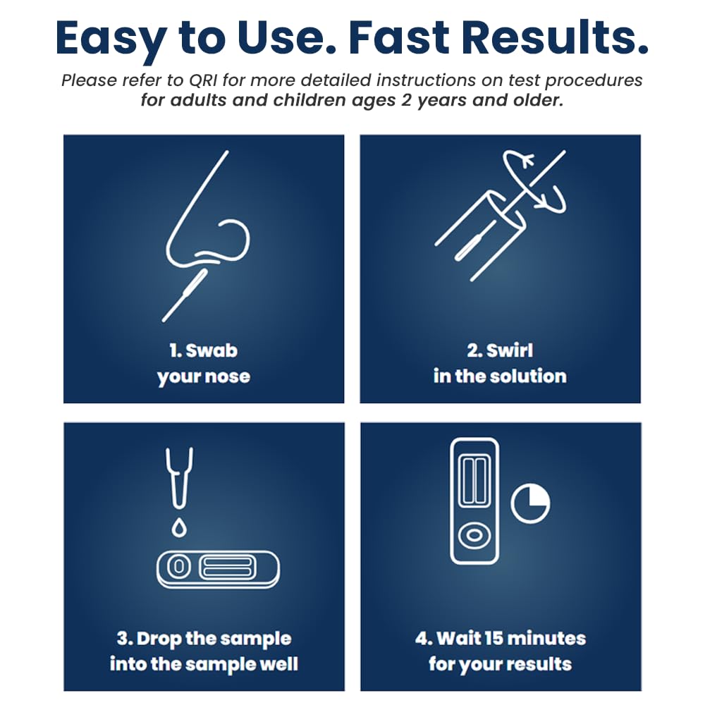 FAMILY-FRIENDLY & EASY TO USE: Approved for self-testing ages 14+; for children ages 2–13, an adult can administer the simple, non-invasive nasal swab; adults can test infants aged 6 months – 23 months with an attachable swab guard provided for safe sample collection; clear step-by-step instructions included in English and Spanish
