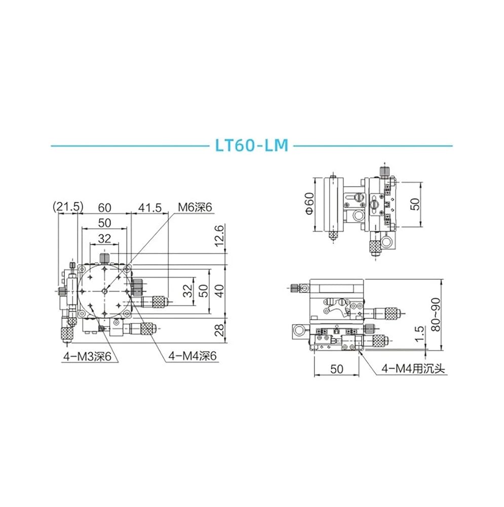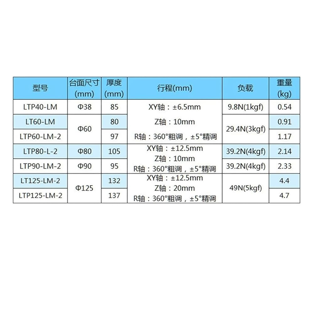 دليل خطي منصة XYZR محور 60*60 مللي متر LT60-LM انزلاق الجدول V-نوع 4-محور ضبط دقيق منصة تحمل تعديل الشريحة 29.4N