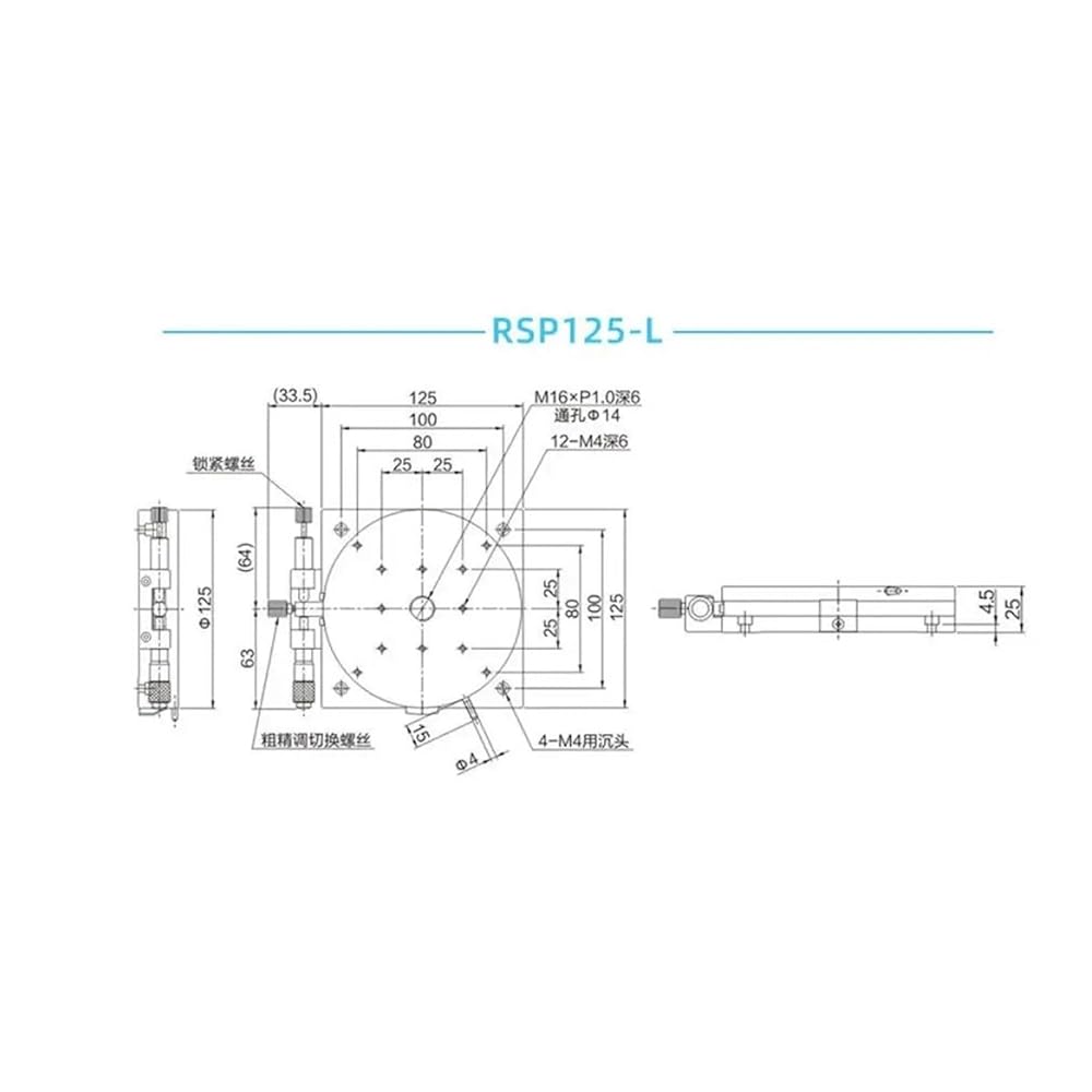 Manual Rotating Platform R Axis 125mm RSP125-L 360 Degree Sliding Stage Bearing Linear Stage Load 49N 5kgf 125mm