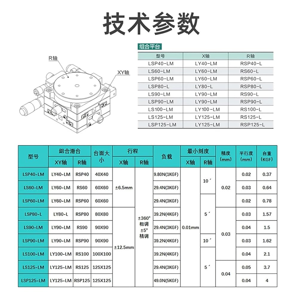 XYR Axis 80mm Micrometer Manual Trimming Platform Translation Table and Rotary Table Cross Rail LSP80-LM