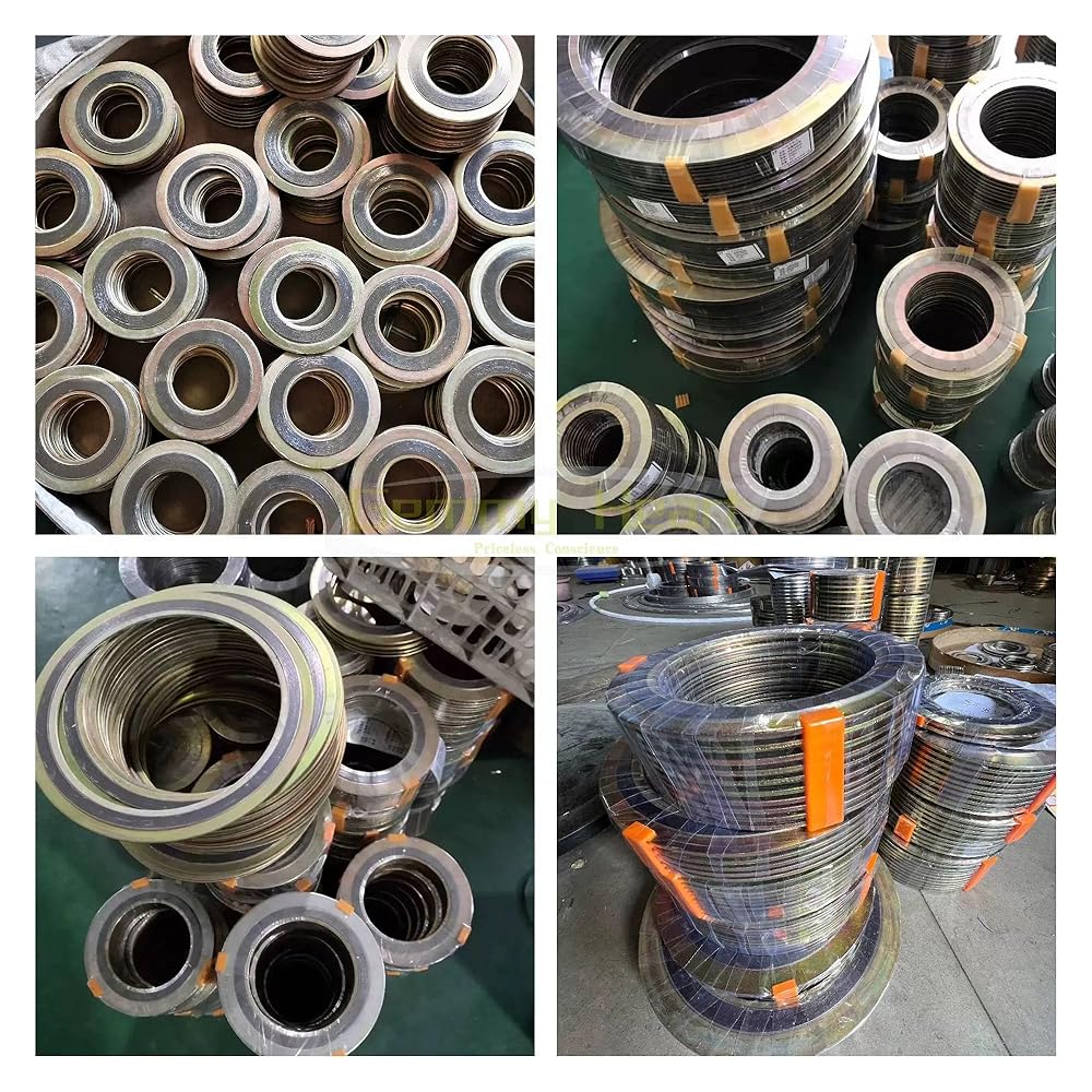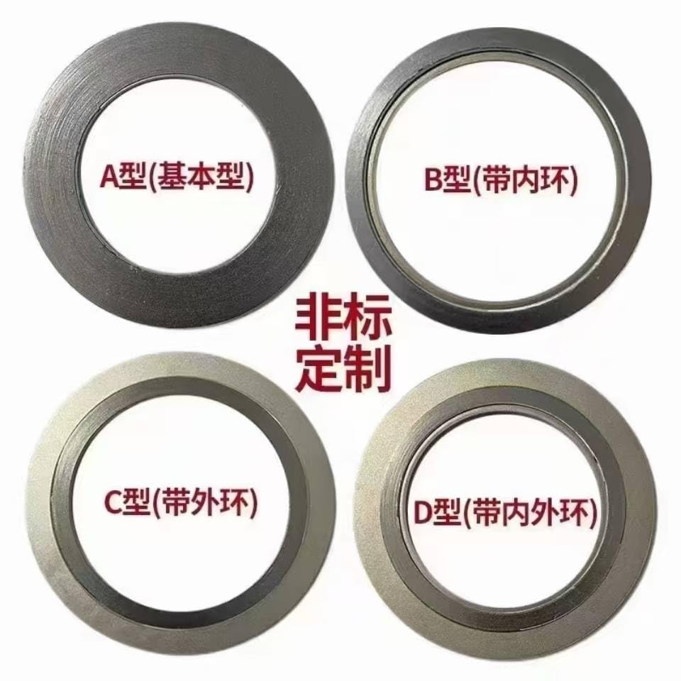Spiral Wound Gasket with 304 Inner Ring‌ ‌Material Composition‌: ‌Sealing Layer‌: 304 stainless steel + graphite filler (alternating spiral winding) ‌Inner Ring‌: 304 stainless steel (centering ring) ‌Standards Compliance‌: HG/T20610 ‌Pressure Rating‌: PN1.6MPA ‌Thickness‌: 4.5mm (typical) ‌Sealing Face Type‌: RF (raised face) ‌Applications‌: Flange connections in oil, chemical, and power industries for sealing under high pressure and temperature. If you need other sizes, please contact me and we will complete soon.will complete soon.