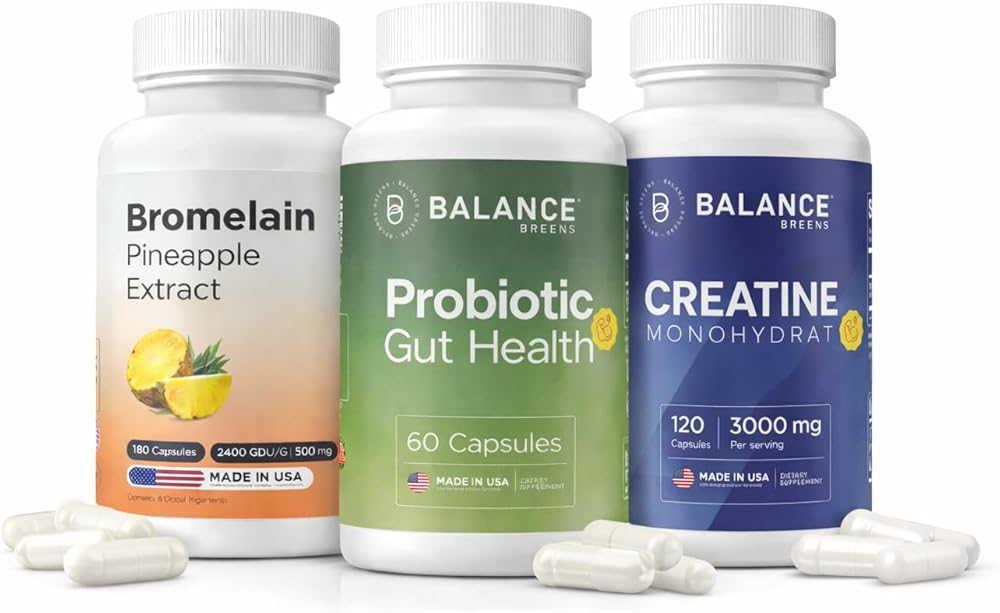 This virtual bundle combines bromelain for natural enzyme support, a multi-strain probiotic for gut balance, and micronized creatine for performance-focused energy. Bromelain helps support routine digestion and everyday comfort, probiotics promote a healthy microbiome and nutrient absorption, and creatine supports muscle energy and training routines. Together, these formulas offer a balanced daily approach for individuals who want digestive ease, gut wellness, and active performance support in one simple stack.