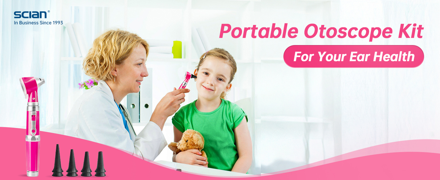 【High-intensity pink ear otoscope】: Ear light otoscope utilize enhanced led technology for bright, 6000k color temperature white light showing true tissue color, allowing for 7 days persistent illumination and the bulb life over 20000 hours, uses 2 AA batteries (not included).