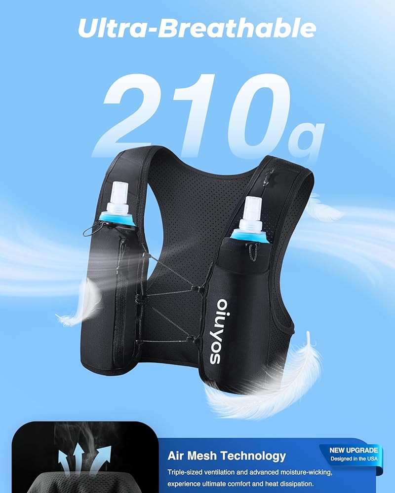 Breathable & Featherlight Comfort: Weighing just 7.7 oz, this running vest is made from featherlight, moisture-wicking neoprene with triple-ventilation holes for maximum airflow. Reflective logos on the front and back provide enhanced visibility and safety in low-light conditions