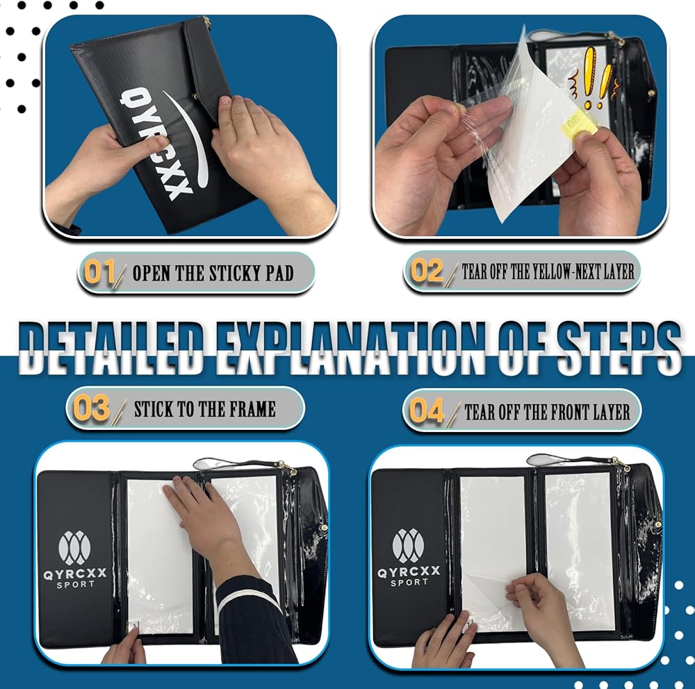 📦 60 ورقة عالية الجودة + حزمة اختيارية مكونة من 120 ورقة: تتضمن 60 ورقة لاصقة ممتازة (11.6 بوصة × 4.7 بوصة) مع عروات مرقمة لسهولة التقشير. تزيل كل ورقة الحطام بشكل فعال دون بقايا. * هل تحتاج إلى استخدام ممتد؟ قم بالترقية إلى مجموعتنا المكونة من 120 ورقة لجداول التدريب المكثفة.*اللاعبون التنافسيون: قم بالترقية إلى مجموعتنا المكونة من 120 ورقة للبطولات.*