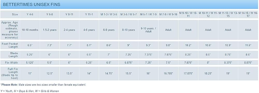 These long-blade fins are highly recommended for training. Color-coded by size A closed ankle provide extra support and easy on and off Volume discount is available for this item Colors subject to change at manufacturer's discretion NOTE: Be advised that the adult sizes correspond more closely to a women's shoe size. Men should consider going one size up. Training floating fins are color-coded