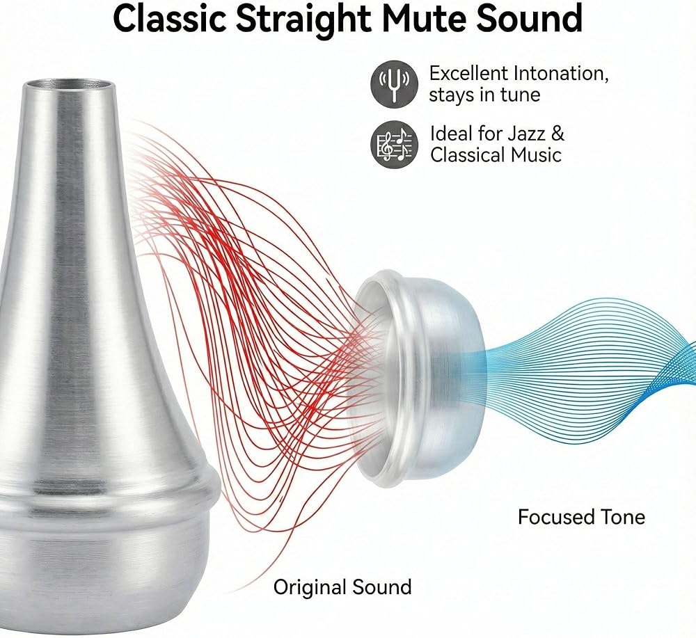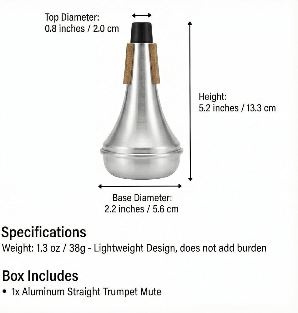 【Lightweight & Pure Aluminum】 Crafted from high-purity, spun aluminum, this mute is exceptionally lightweight and won't add unnecessary weight to your trumpet bell. The durable material ensures a bright, professional sound and long-lasting performance without the risk of rust or deformation.