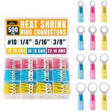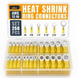 مجموعة أطراف حلقية كاملة مكونة من 250 قطعة مع أطراف حلقية قابلة للانكماش الحراري وموصلات طرفية حلقية بأحجام متعددة. تتضمن تشكيلة أطراف الحلقة الدائرية ذات الانكماش الحراري أطراف حلقة تجعيد صفراء 12-10 AWG لتوصيلات كهربائية موثوقة.