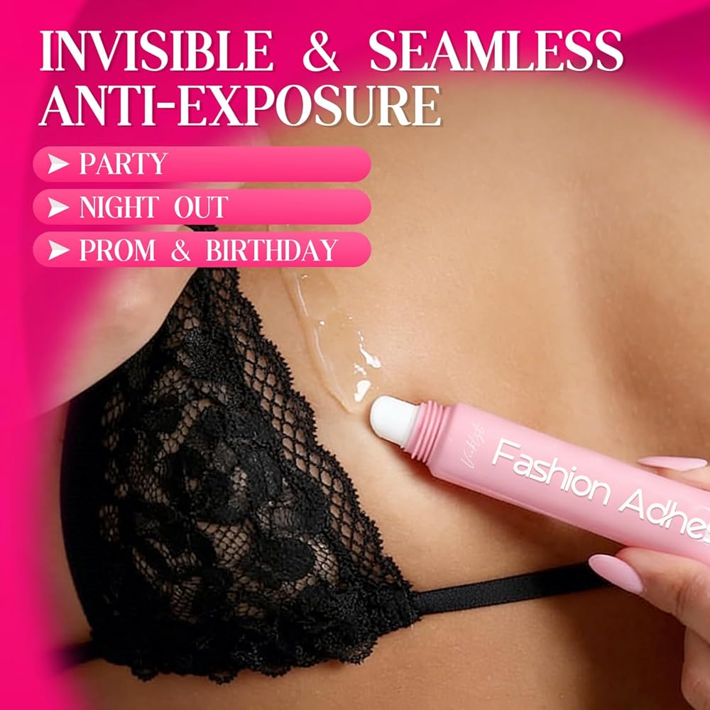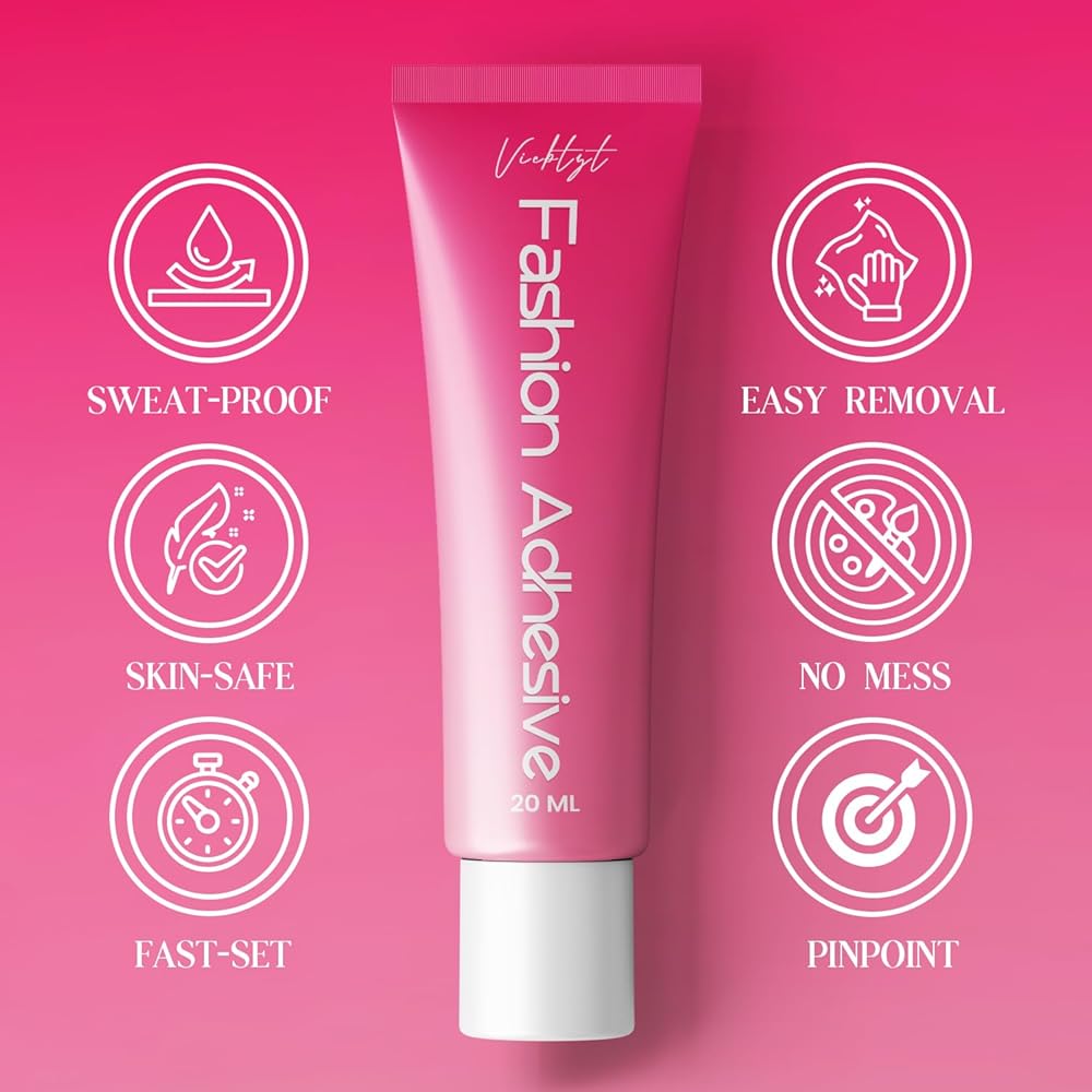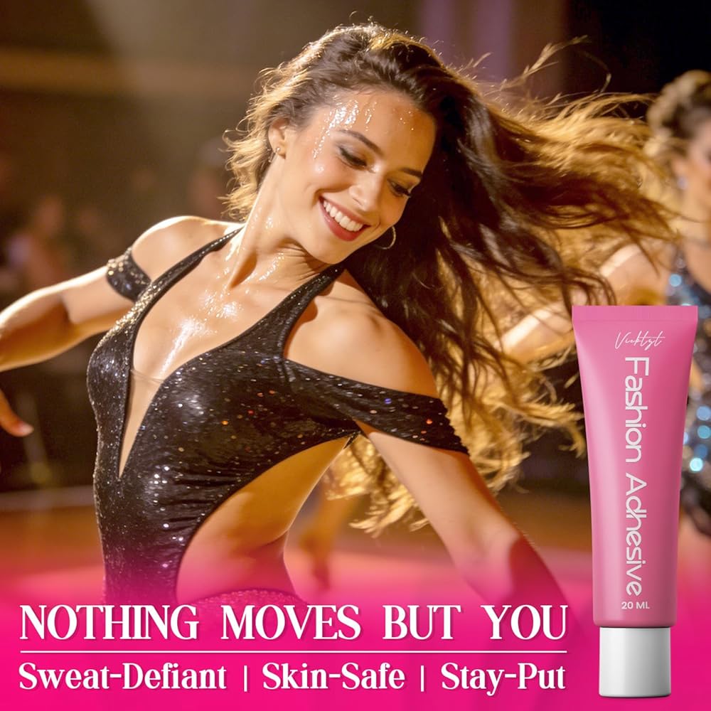 Sweat-proof stay & Quick-dry ease: Sweat-resistant body glue stays put even in sweatiest summer. Ultra-bond secures through intense dance, sports & daily—no wardrobe malfunctions all day. Portable, sets in 3s for on-the-go touch-ups, your reliable fix for outfit emergency.