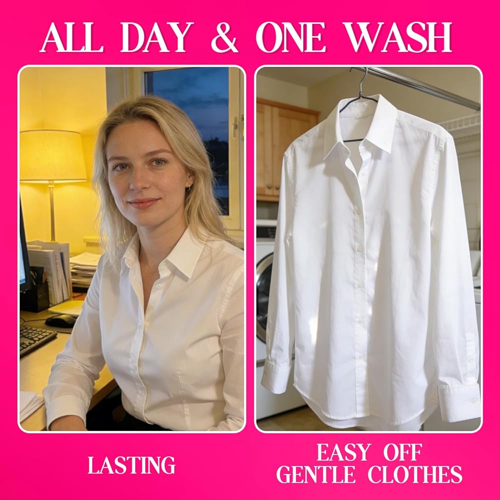 Easy Removal & Residue-Free: Its water-soluble polymer formula wipes off gently with warm water—safe for silk, dancewear, sportswear, and shirts. Won't stain or damage fabrics, keeps clothes smooth and intact, combining convenience and care.