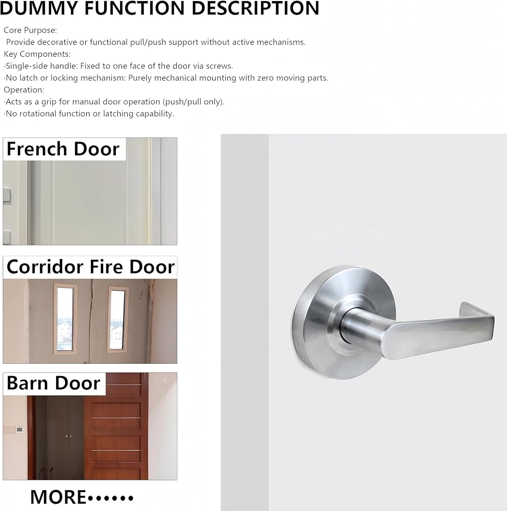 【Dummy Trim Function Description】This simple, mechanical door handle is designed only for pushing or pulling doors. It attaches to one side of the door with screws (available in stainless steel or brass), has no moving parts, and doesn't turn or lock. Perfect for places that just need basic door operation without any locking features, it's durable and requires no maintenance.