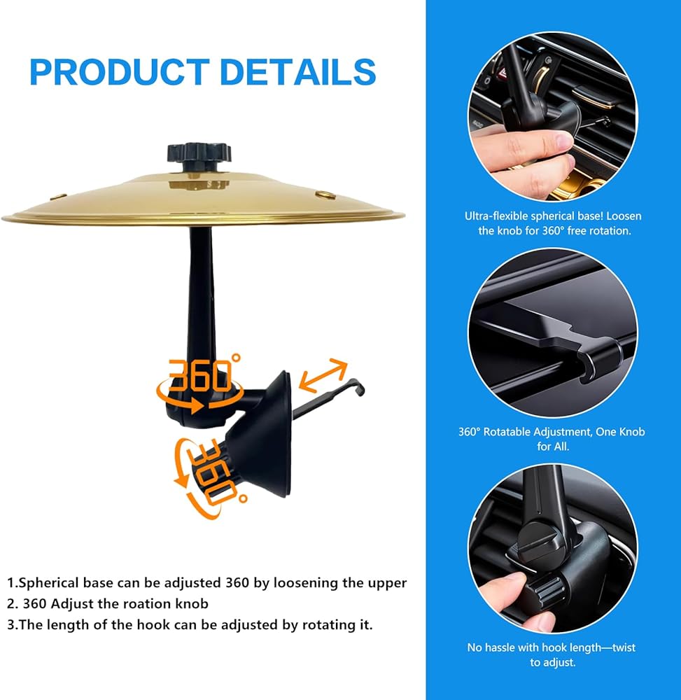 سهلة التركيب: لا توجد أدوات، فقط قم بتركيبها مباشرة على فتحة تهوية السيارة، ويمكن تدوير مجموعة طبلة السيارة 360 درجة ولن تعيق لوحة القيادة، وهي مناسبة لجميع أنواع المركبات.
