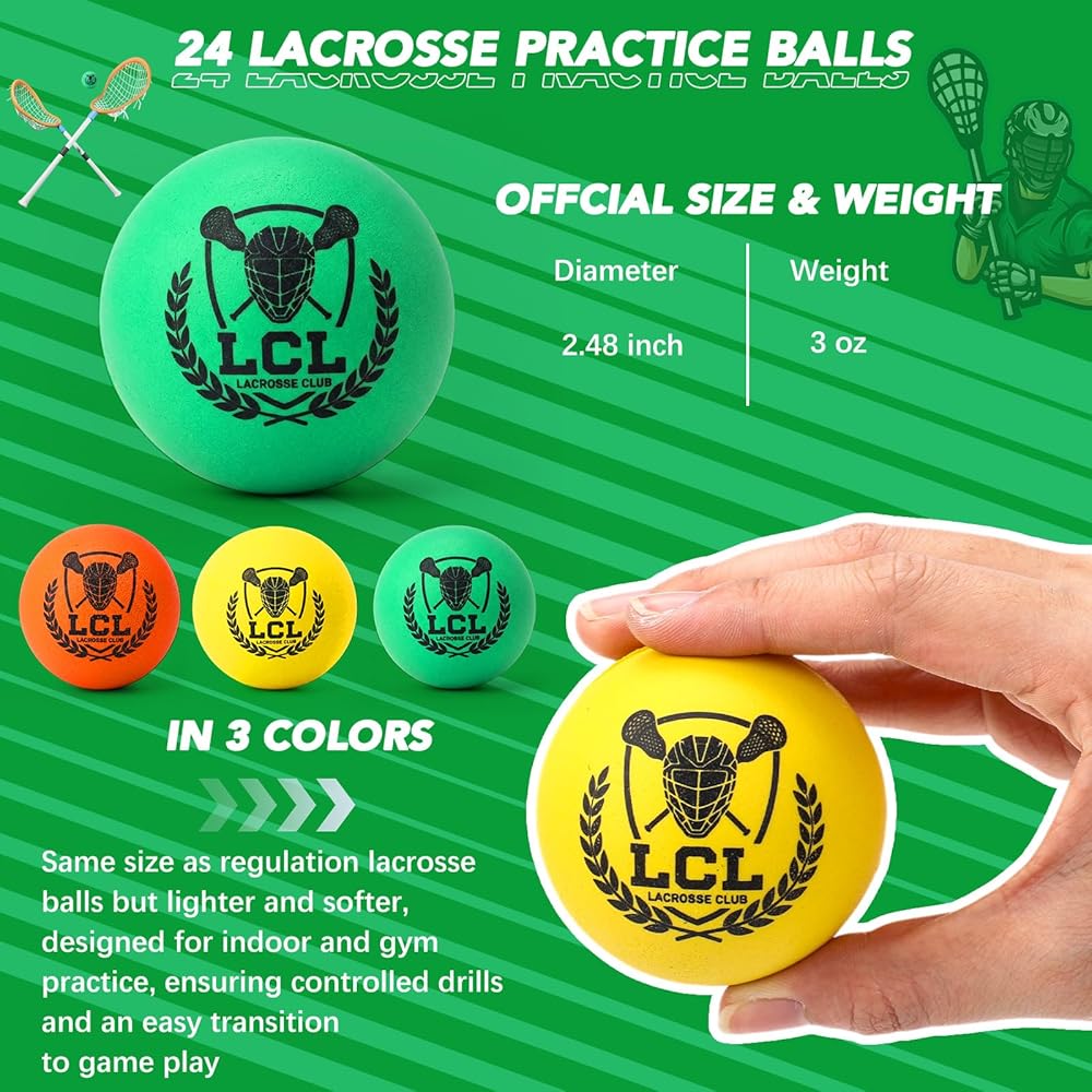 • Official Size: same size as regulation lacrosse balls but lighter and softer, each weighing about 3 oz; Designed for indoor and gym practice, these foam lacrosse balls are safe for hardwood floors and feature minimal bounce, reducing rebounds that players spend more time training, ensuring controlled drills and an easy transition to game play