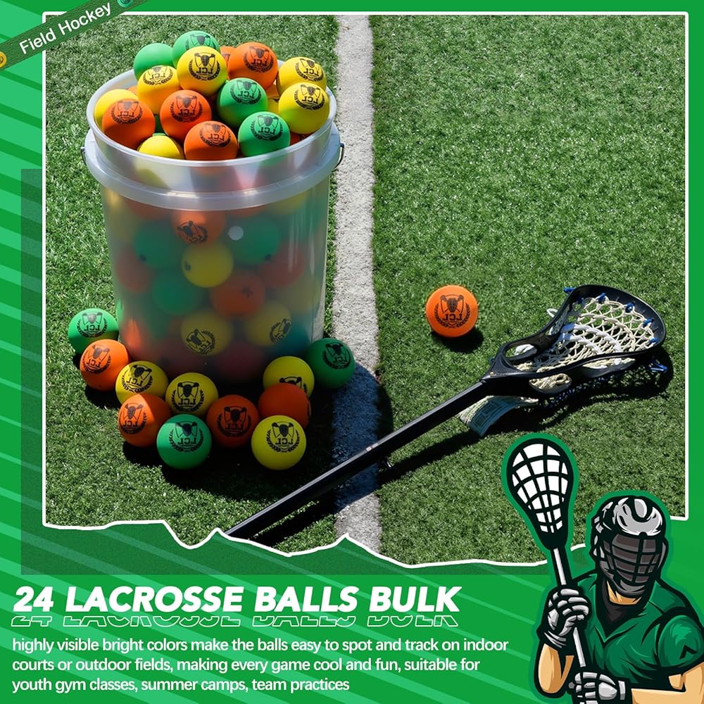 • Lacrosse Balls Bulk: you will receive 24 packs of soft lacrosse balls in 3 colors, the set designed for youth gym classes, summer camps, team practices; Highly visible bright colors make the balls easy to spot and track on indoor courts or outdoor fields, making every game cool and fun