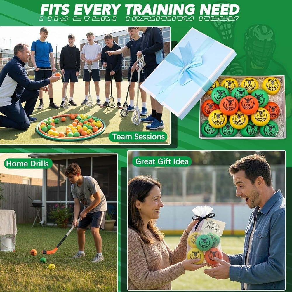 • Indoor and Outdoor Training: suitable for all skill levels, these lacrosse practice balls perform reliably indoors or outdoors, regardless of weather conditions; The reduced bounce and minimal rebounds make practice more efficient on turf, grass, or gym floors, allowing players to focus on drills and skill development instead of chasing runaway balls