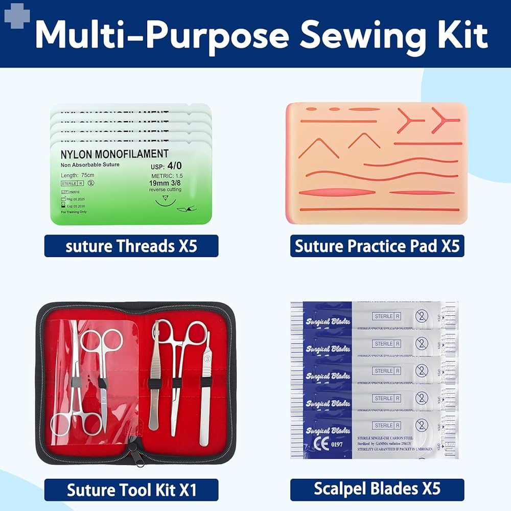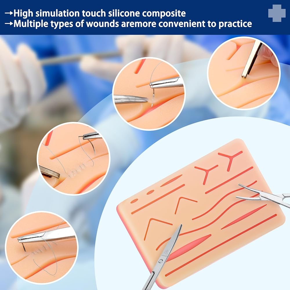 Develop Essential Surgical Skills with Professional Suture Training Master the art of wound closure with this comprehensive suture practice kit, designed to provide medical and veterinary students with realistic, hands-on training experience. This all-in-one set contains everything needed to build confidence and proficiency in fundamental suturing techniques. Complete Learning Solution This carefully curated kit includes all essential components for effective practice sessions. The collection features professional-grade instruments identical to those used in clinical settings, combined with a realistic practice pad and assorted suturing materials. Each element works together to create an authentic learning environment for skill development. Realistic Training Experience The centerpiece of this kit is the specially designed practice pad that mimics human skin texture and resistance. With multiple pre-cut wounds including straight lacerations, curved incisions, and complex shapes, learners can practice various closure techniques. The durable silicone construction allows for repeated use while maintaining consistent practice conditions. Built for Serious Practice Crafted from quality materials, this kit withstands regular training use. The stainless steel instruments provide proper weight and balance, while the reinforced practice pad resists tearing even with frequent needle passes. This durability ensures the kit remains functional throughout your learning journey. Versatile Educational Tool Whether you're preparing for medical school exams, veterinary clinical rotations, or simply maintaining procedural competence, this kit adapts to your learning needs. The portable design enables practice anywhere, making it convenient for busy students and professionals alike. Essential for Healthcare Education This practice kit serves multiple educational purposes: Medical student skill development Veterinary nursing training Surgical technique refinement Clinical competency maintenance Procedure preparation and review Begin your journey toward surgical proficiency with this professional training solution.