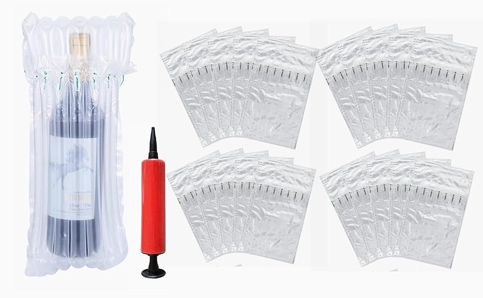 • 🍷【متعددة الأغراض】أكياس شحن النبيذ لزجاجات النبيذ والبيرة والشمبانيا والفواكه والعطور ومستحضرات التجميل والسيراميك والنباتات والمنتجات الإلكترونية وغيرها من المنتجات الهشة أثناء النقل، سواء كنت مسافرًا بالطائرة أو شحنة الأمتعة أو التخييم.