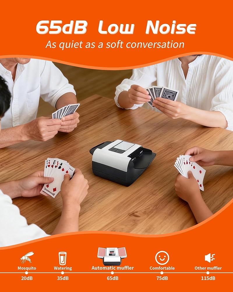 【Quiet & Focused Gameplay】Engineered with a low-noise motor, our shuffler operates quietly without disrupting your game's concentration or atmosphere. Enjoy immersive and social gameplay, free from the constant whirring of older, noisy models.