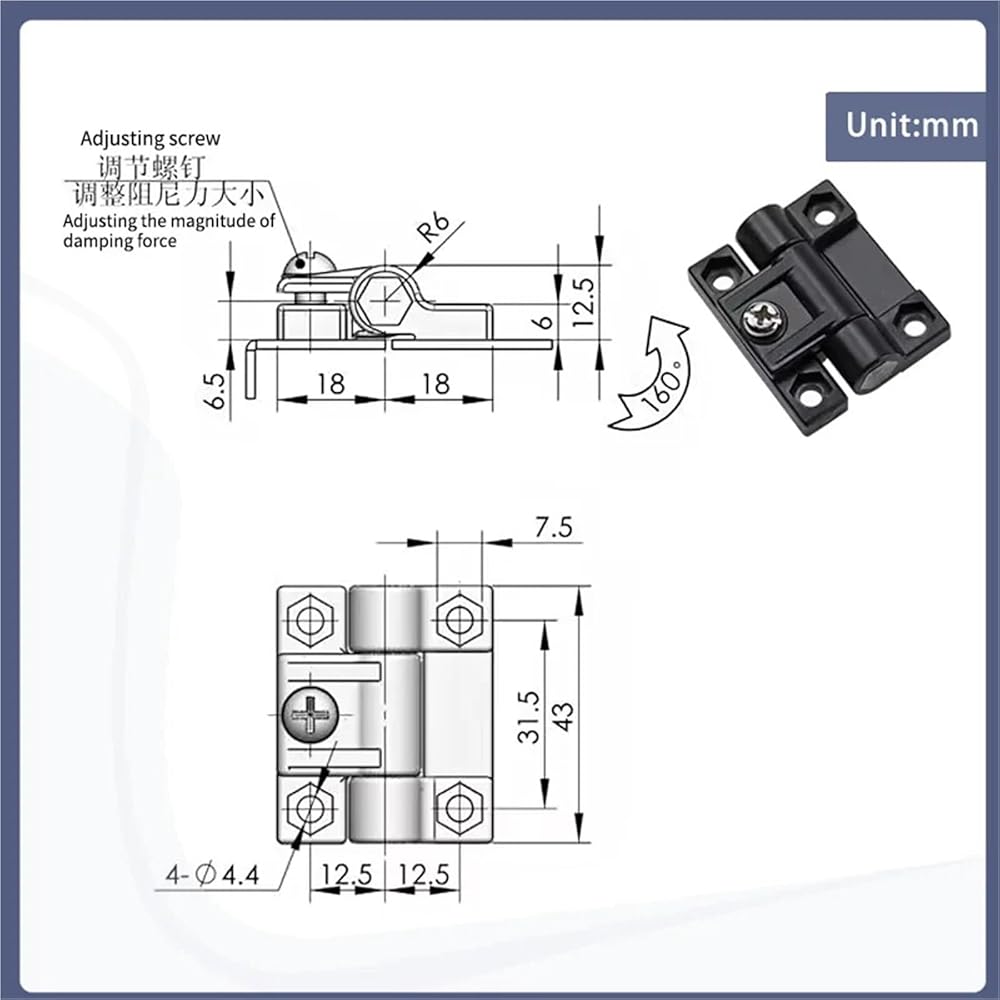 Black Plastic Foldable Adjustable Torque Damping Hinge Suitable For Industrial Cabinet Doors 1Pcs