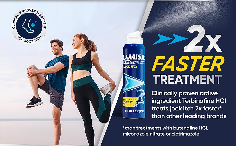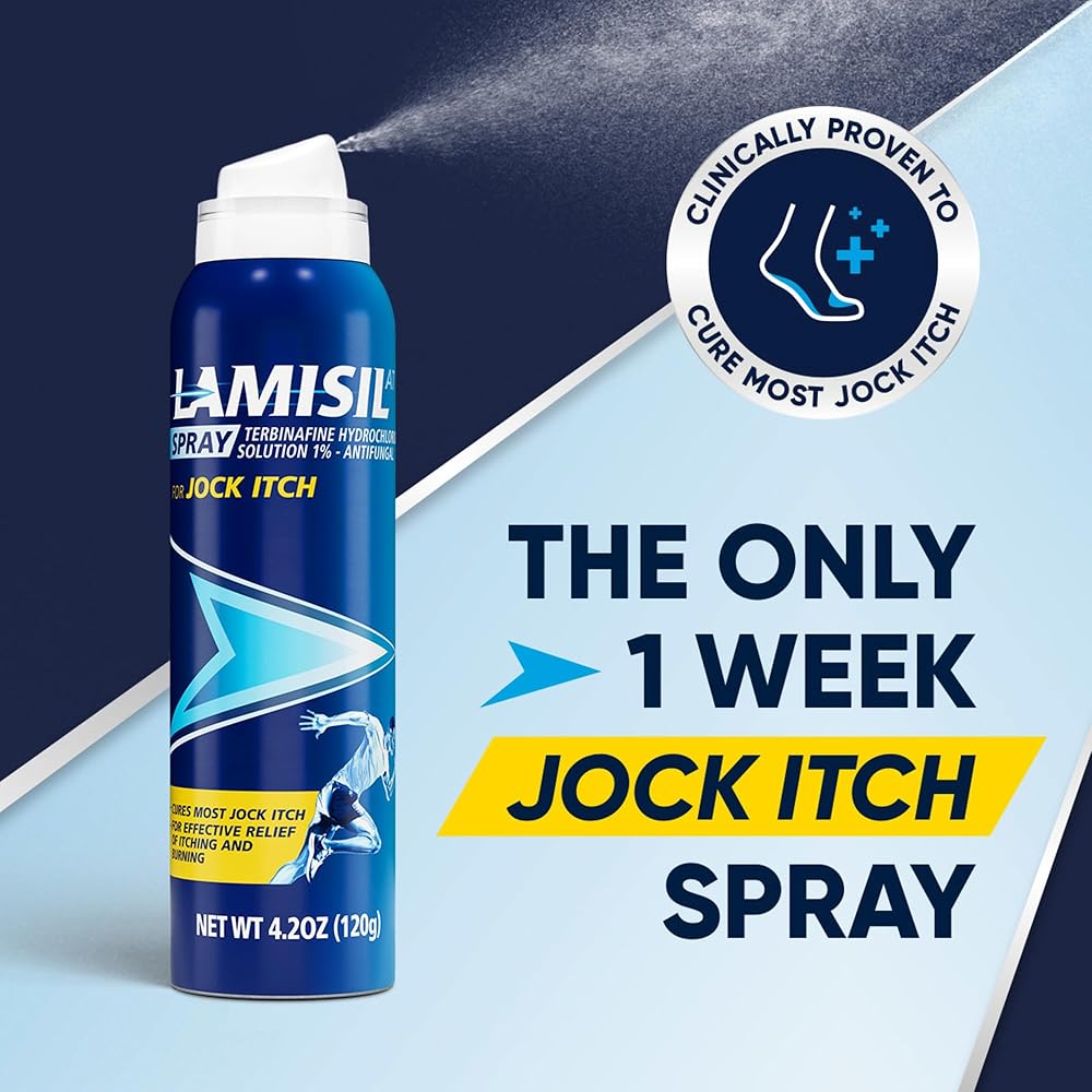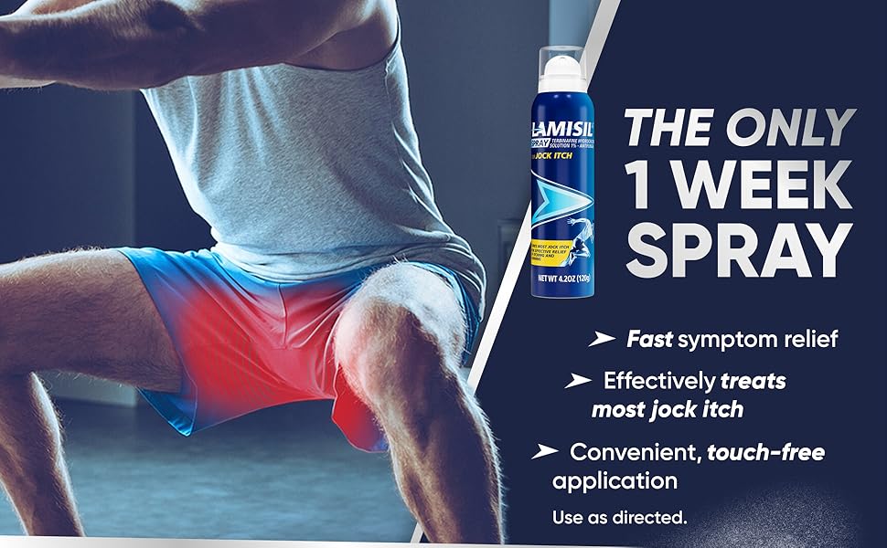 ELIMINATE JOCK ITCH FAST & STOP THE SPREAD: Lamisil Jock Itch Spray is the ONLY 1 week Antifungal Spray to cure most Jock Itch. Don't let jock itch spread or worsen—take control with prescription strength Lamisil Jock Itch Spray, the #1 Doctor Recommended antifungal brand. Clinically proven to cure jock itch in as little as 1 week of daily use, its prescription-strength Terbinafine Hydrochloride 1% formula actively targets and eliminates the fungus, providing rapid relief from itching, burning, redness, cracking, and scaling. TRUSTED BY DOCTORS & EFFECTIVE FOR ACTIVE LIFESTYLES: Lamisil is the top choice for athletes and active individuals, delivering reliable and rapid results. Its easy-to-use continuous touch-free spray helps you apply in hard-to-reach places and avoid touching the fungal infection. SAFE & EFFECTIVE FOR AGES 12 AND UP: Suitable for men, women, and teens 12 and older. Lamisil provides dependable jock itch relief, making it a trusted solution for the family.