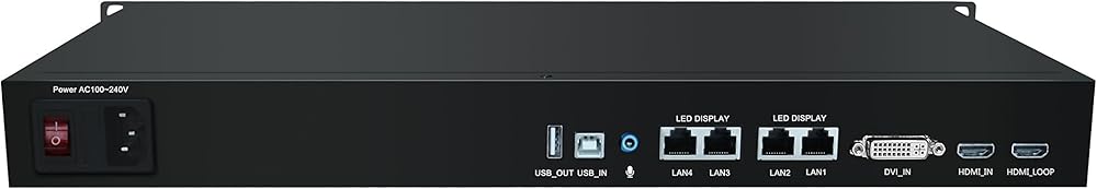 • [𝗠𝘂𝗹𝘁𝗶𝗽𝗹𝗲 𝗜𝗻𝗽𝘂𝘁 𝗮𝗻𝗱 𝗢𝘂𝘁𝗽𝘂𝘁 𝗢𝗽𝘁𝗶𝗼𝗻𝘀 𝗳𝗼𝗿 𝗙𝗹𝗲𝘅𝗶𝗯𝗹𝗲 𝗖𝗼𝗻𝘁𝗿𝗼𝗹]: Equipped with HDMI 1.4 and DVI inputs, plus HDCP compliance for secure digital content playback, this LED video wall controller is designed to handle demanding applications. The HDMI loop output allows easy monitoring or daisy-chaining with other controllers, while the 3.5mm audio input integrates external sound sources. Its versatile connectivity makes it an excellent choice for video wall panels, digital signage, and live event applications.
