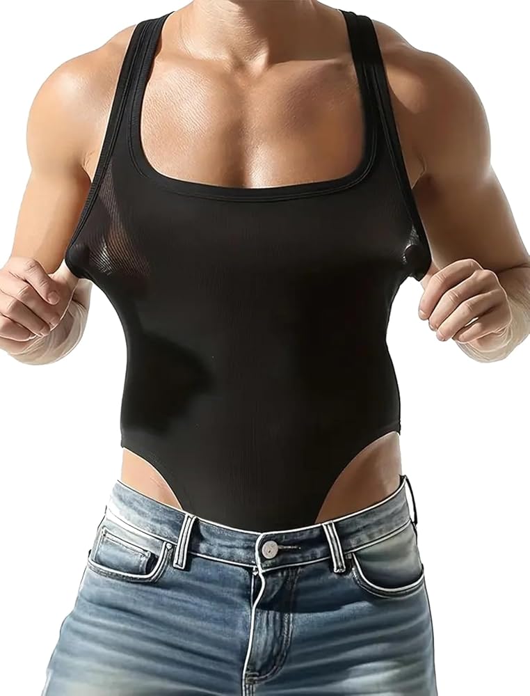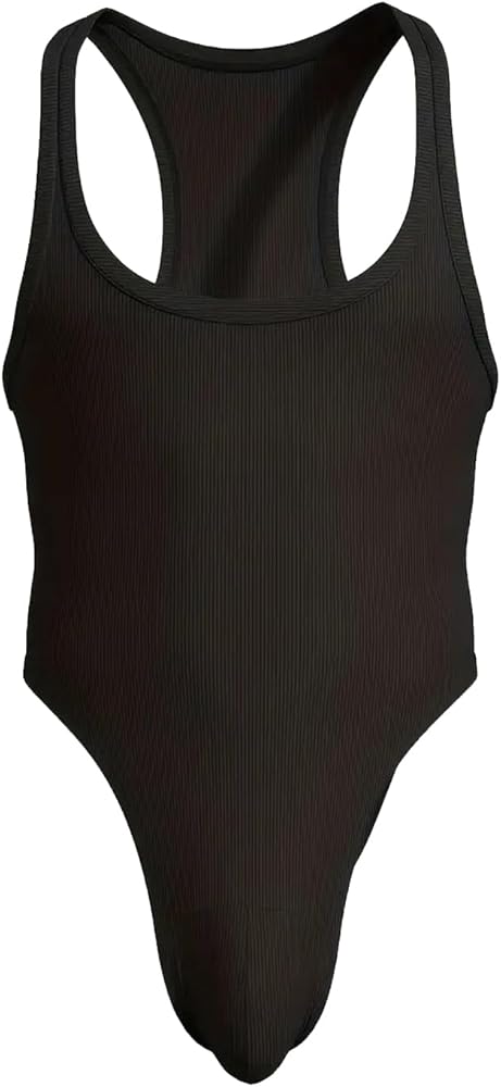 ملابس داخلية للتنحيف مضلعة للرجال من MIZOK، بدلة قطعة واحدة مضغوطة من الخلف، ملابس تحتية للمصارعة، أسود S
