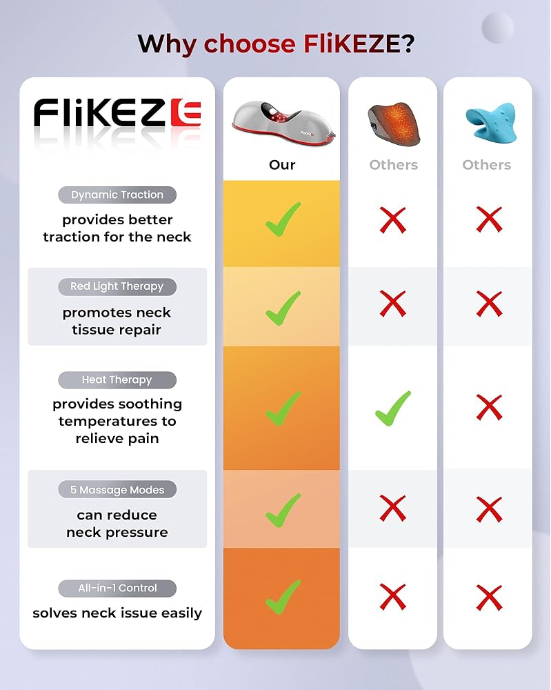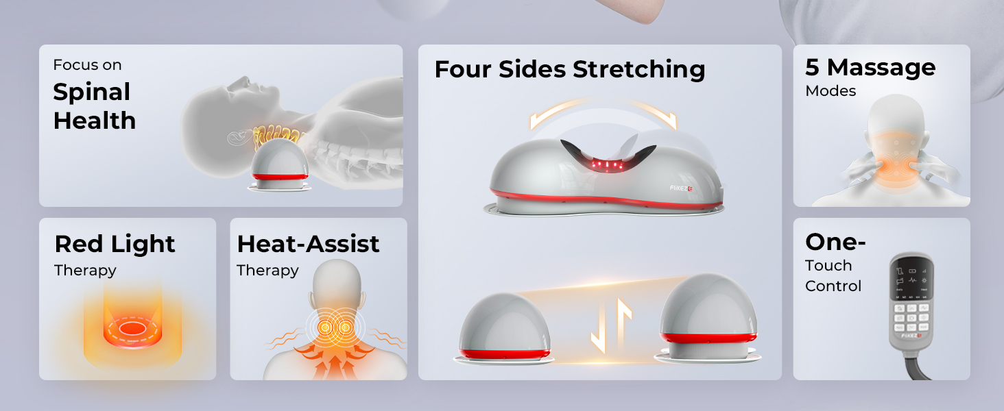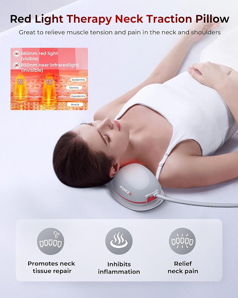 【ميزة العلاج بالضوء الأحمر】يعتمد جهاز جر الرقبة FliKEZE تقنية العلاج بالضوء الأحمر الجديدة التي يمكنها تعزيز عملية التمثيل الغذائي وإصلاح الأنسجة لخلايا الرقبة، وتخفيف التوتر وتشنج عضلات الرقبة بشكل أفضل. جهاز الجر العنقي مناسب جدًا للأشخاص الذين يعانون من صداع التوتر، وTMJ، وضعف الوضع، ومشاكل الرقبة أو الرقبة التقنية والألم.