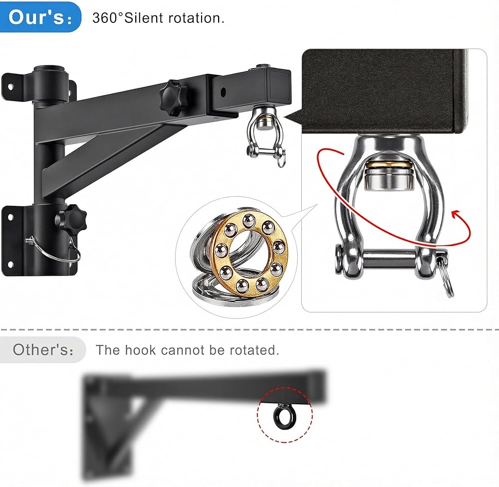 【Adjustable & Rotatable Design for Customized Training】Features five adjustable length settings and 360-degree rotation capability, allowing you to perfectly position your punching bag for boxing, Muay Thai, or MMA training. This innovative design enables optimal swing control and training angles unavailable with fixed mounts