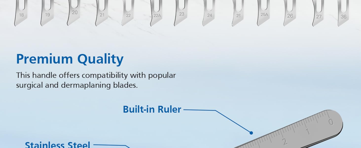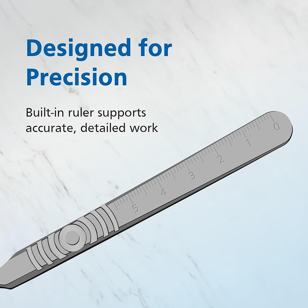 • مسطرة مدمجة للدقة: مقبض المشرط رقم 4 يتميز بعلامات متدرجة لدعم القياسات الدقيقة أثناء الإجراءات أو الاستخدام السريري