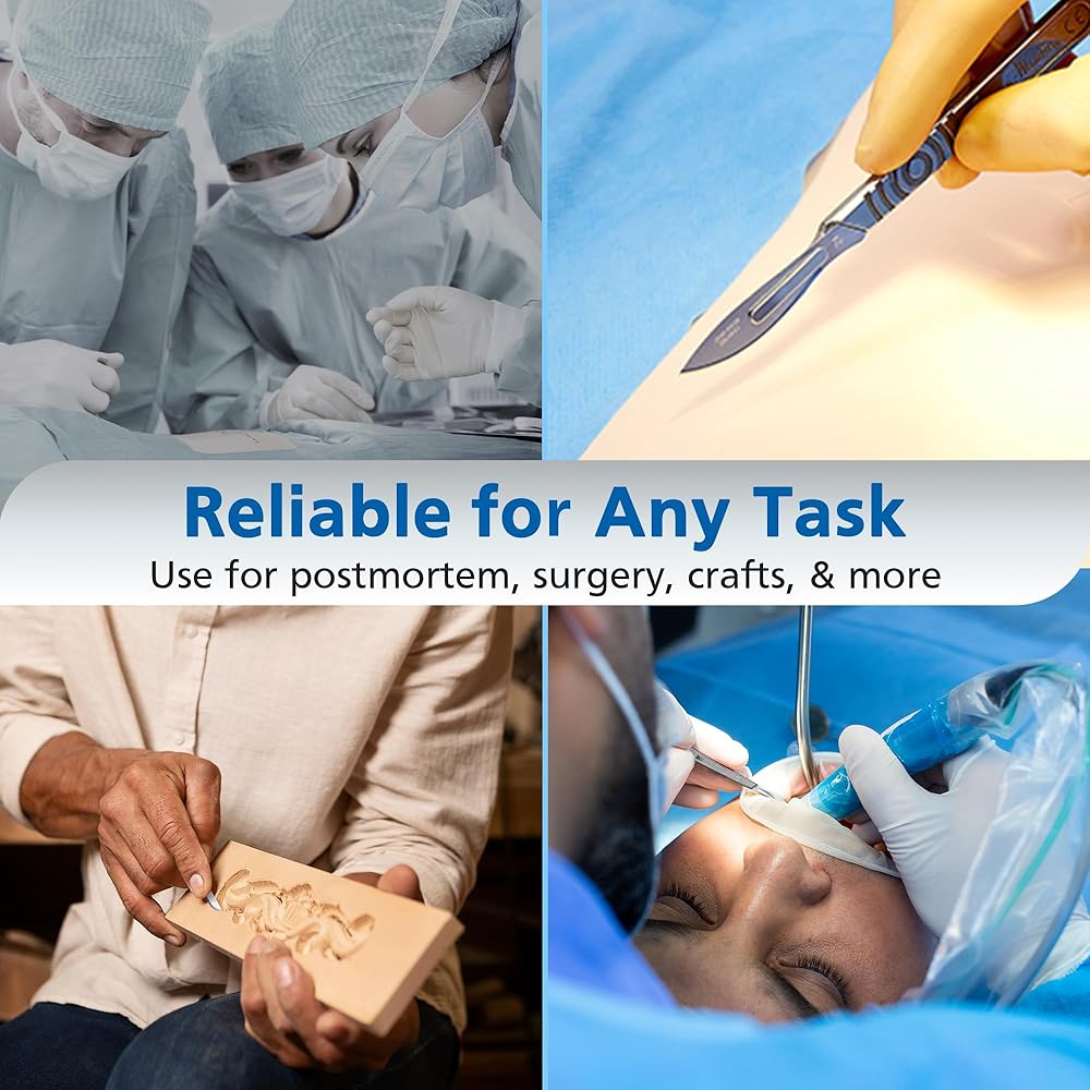 • استخدام متعدد الاستخدامات: التصميم القابل لإعادة الاستخدام مثالي للشفرات المستخدمة في التطبيقات الجراحية، أو صناعة النماذج، أو الأعمال اليدوية والهوايات التفصيلية. المقبض قابل للتعقيم