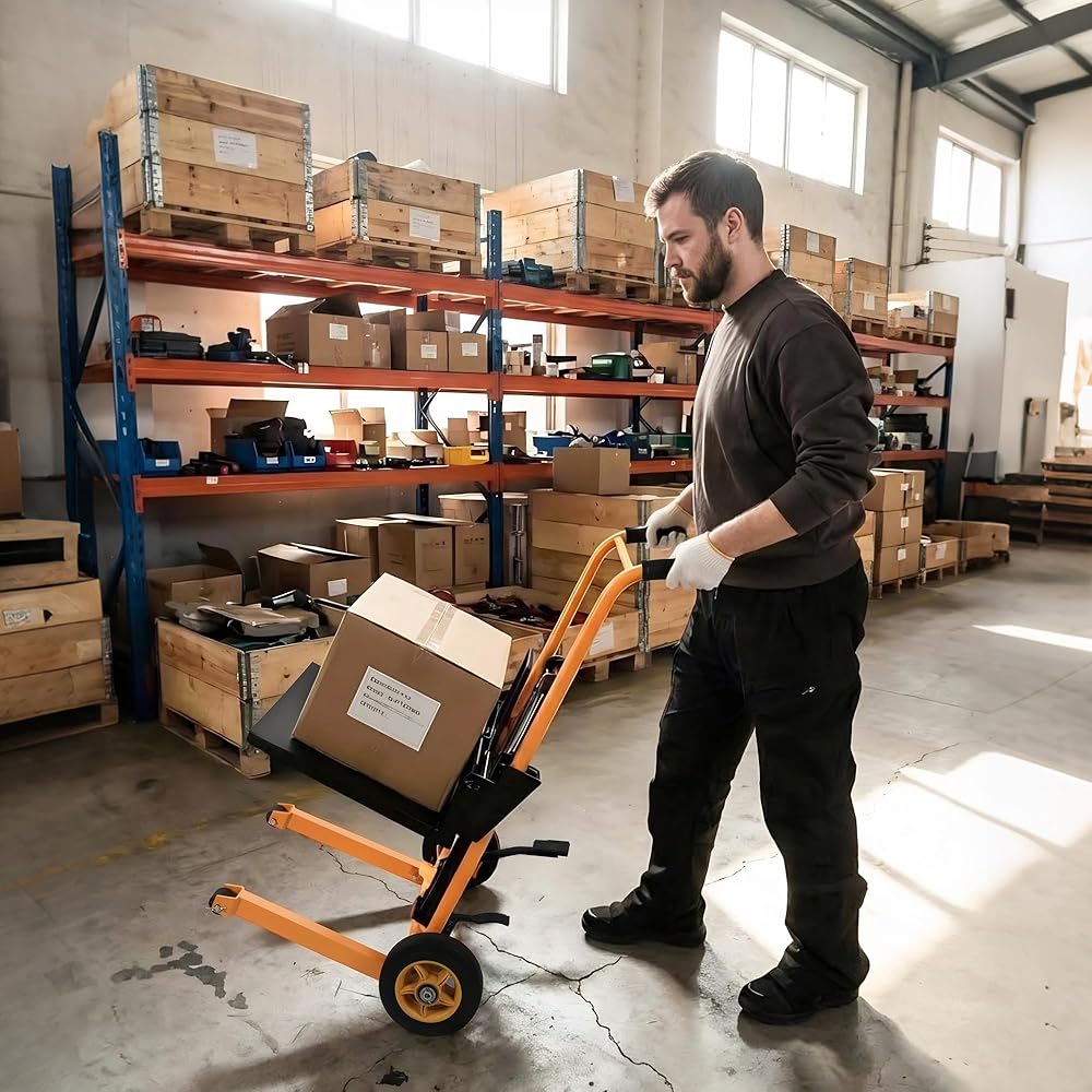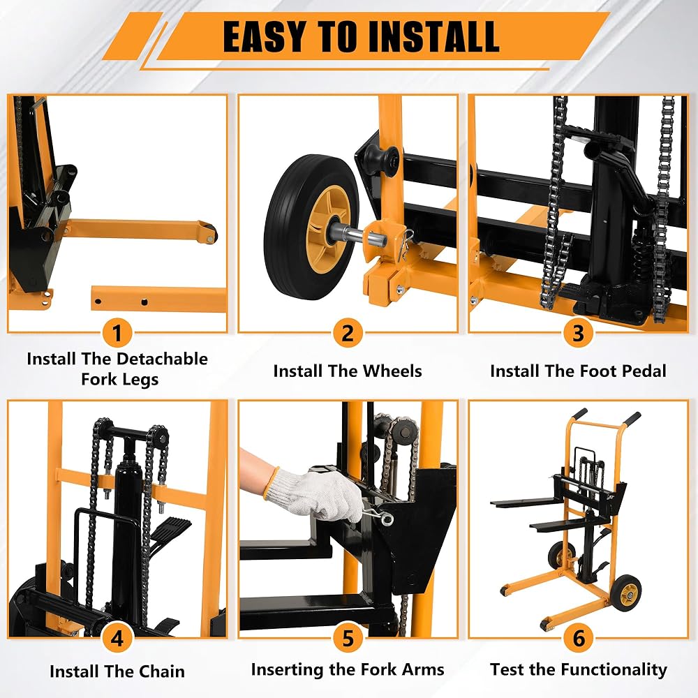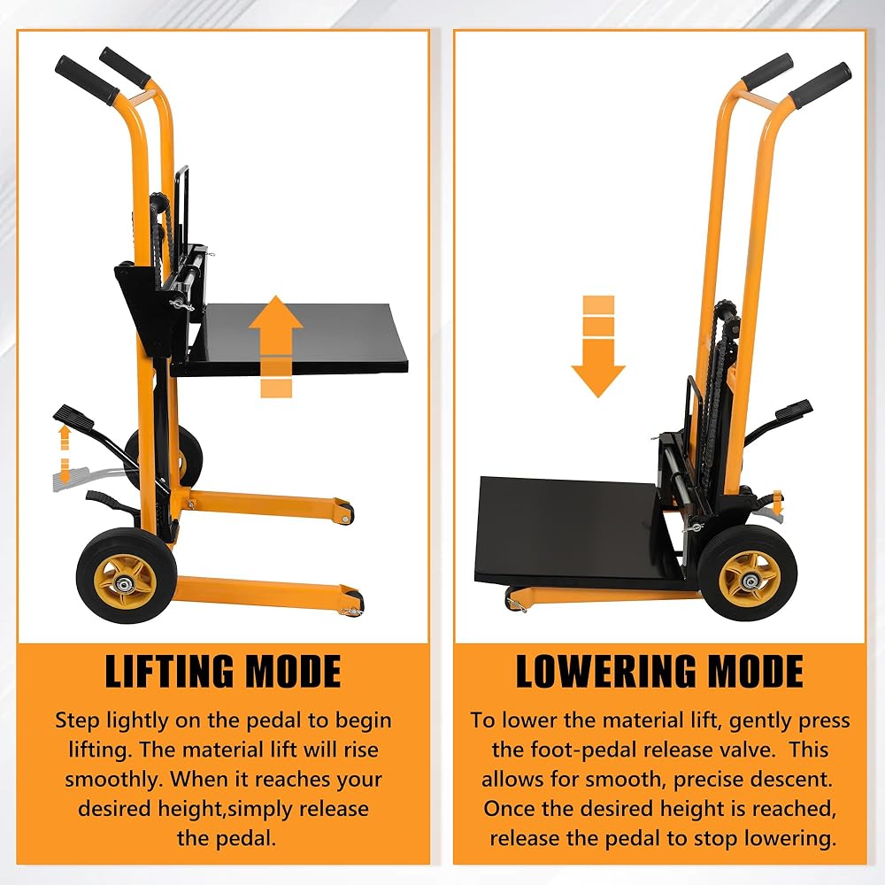 • 【تصميم مكدس وشاحنة يدوية 2 في 1】استخدمها كمكدس رفع للمواد للرفع الرأسي أو قم بتحويلها بسرعة إلى شاحنة يدوية للنقل. مثالية للمستودعات والمصانع وورش العمل ومحلات البيع بالتجزئة وغرف التخزين وأرصفة التحميل.