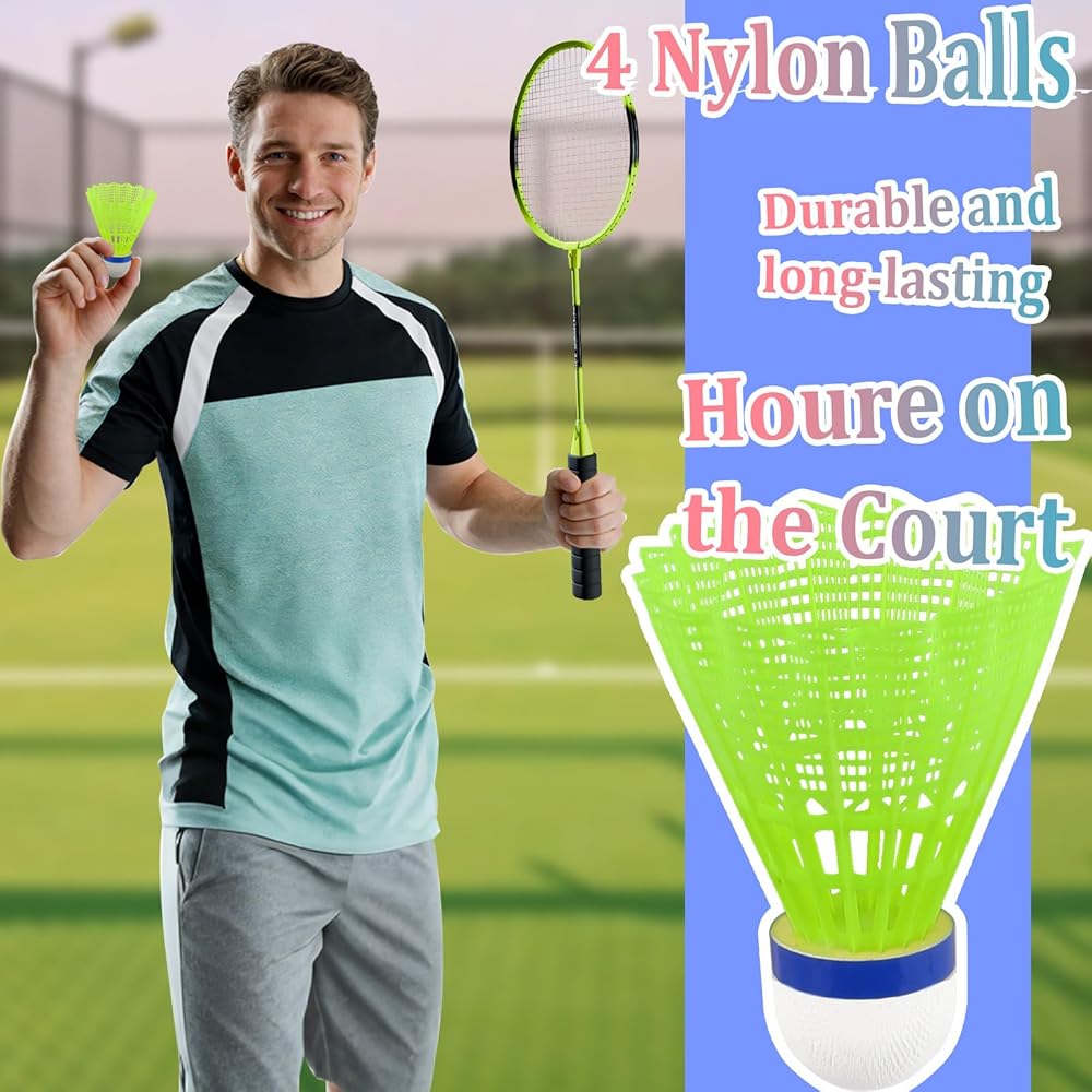 Introducing our Beginner Friendly Badminton Racket Set, the perfect companion for adults and families looking to enjoy casual sports, daily training, or quality bonding time together. This complete badminton rackets set includes high-quality racket badminton and 4 durable, unbreakable balls, each carefully crafted to deliver long-lasting performance and consistent playability whether you're playing indoor badminton in your home, gym, or recreational space, or using it as one of your go-to outdoor badminton sets for backyard gatherings, park outings, or beach games. Crafted specifically with beginners and casual players in mind, our badminton sets prioritize ease of use without compromising on quality, featuring a lightweight racket design that ensures effortless maneuverability, allowing for smooth swings without straining your arms, and greatly reducing hand and arm fatigue even during extended play sessions or back-to-back matches. What truly sets our badminton racket set apart from ordinary options is its exceptional sturdy construction and attention to detail. From the firm, reinforced frame made of high-quality materials that resists deformation, bending, and damage even with frequent, intense use, to the tough, high-density balls that are not easy to break, crack, or lose their shape—you can count on this set for repeated play, game after game, without needing constant replacements. The non-slip, ergonomic grip adds an extra layer of comfort and control, fitting securely in your hand and preventing slippage even when your palms are sweaty or during windy outdoor conditions, allowing you to swing with confidence whether you're practicing your serves, perfecting your shots, or enjoying a casual, competitive game with family and friends. Versatile, convenient, and built to adapt to any setting, this racket badminton set is suitable for both indoor and outdoor use, making it perfect for family gatherings, friendly matches, casual sports activities, daily training routines, or even impromptu games with neighbors. No matter if you're completely new to the sport of badminton and looking for a reliable, easy-to-use set to get started, or a casual player who enjoys occasional games and wants a durable option that doesn't sacrifice comfort, our badminton rackets set is designed just for you. It perfectly combines lightweight comfort for effortless handling, a firm, durable frame for long-term reliability, and unbreakable balls for worry-free play, making it a practical, cost-effective choice for all adult badminton enthusiasts. This set is more than just a collection of badminton gear—it's an easy way to bring fun, activity, and connection to your free time, whether you're playing indoor badminton on a rainy day or taking advantage of nice weather with outdoor badminton sets in your backyard or local park. Invest in a badminton set that's built to last, designed for enjoyment, and tailored to fit the needs of beginners and casual players alike—ideal for anyone seeking simplicity, quality, and durability in one complete, ready-to-use package.