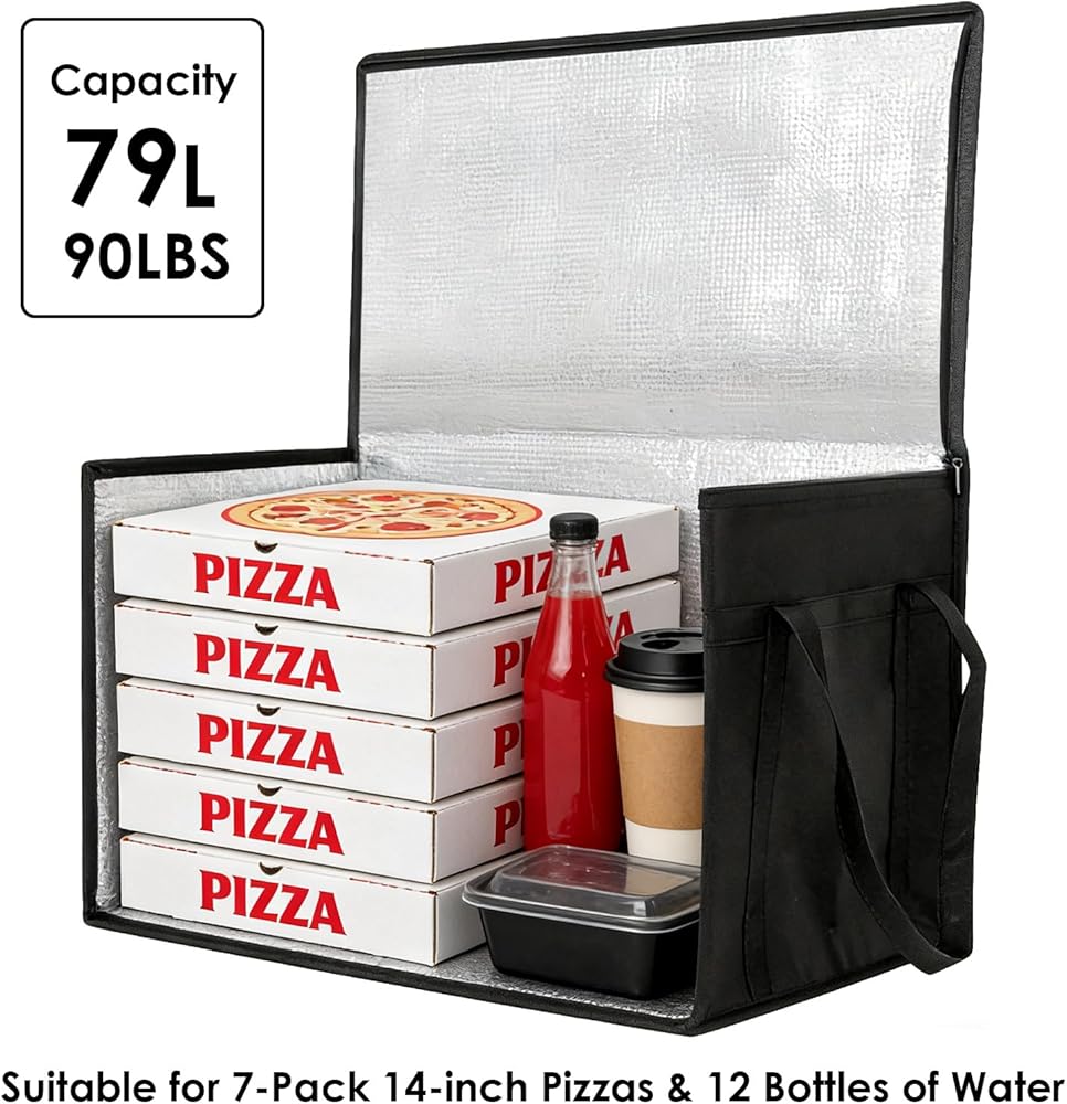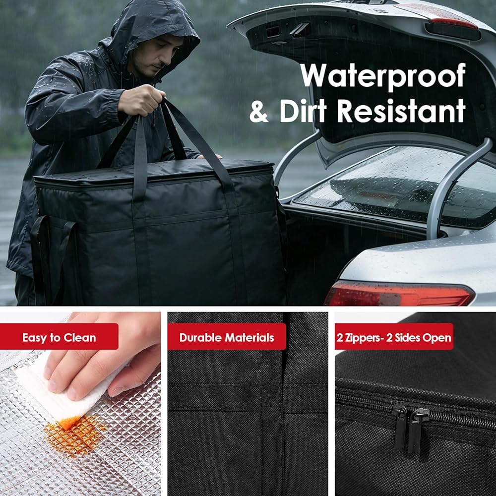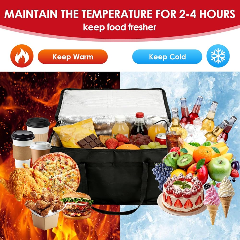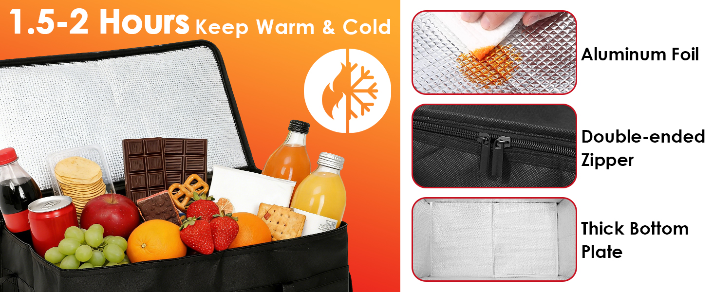 الاحتفاظ بدرجة الحرارة بشكل موثوق لساعات --- مصنوعة من بطانة حرارية فعالة، تعمل حاوية الطعام المعزولة هذه كمدفأة طعام يمكن الاعتماد عليها ومبرد. يساعد في الحفاظ على درجة الحرارة المطلوبة للوجبات الساخنة أو البضائع المجمدة أو المشروبات الباردة لفترات طويلة. وهذا يضمن وصول البيتزا أو البقالة أو الأطباق المعدة في حالتها المقصودة، مما يجعل كل رحلة موثوقة.