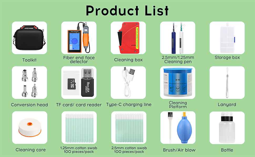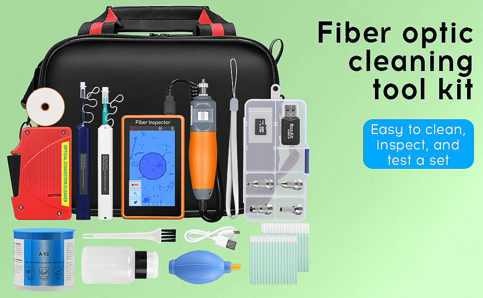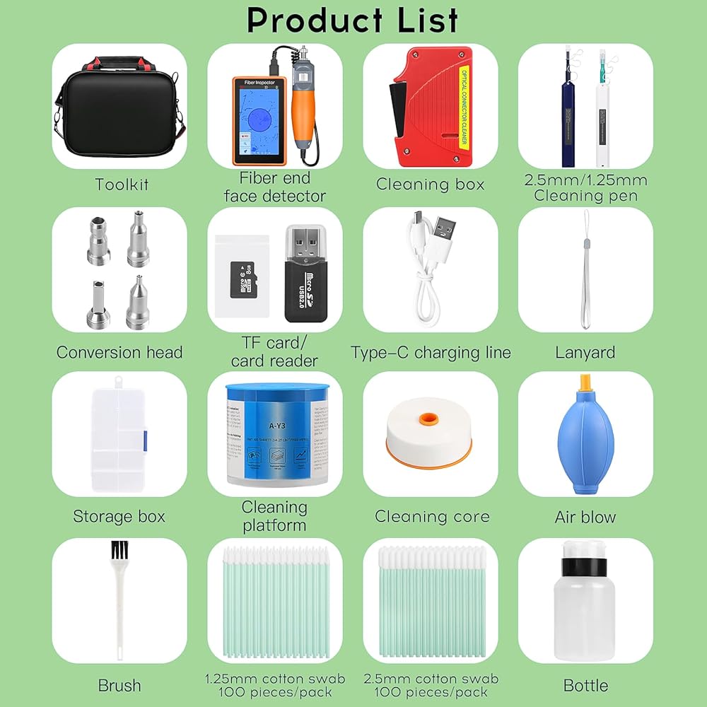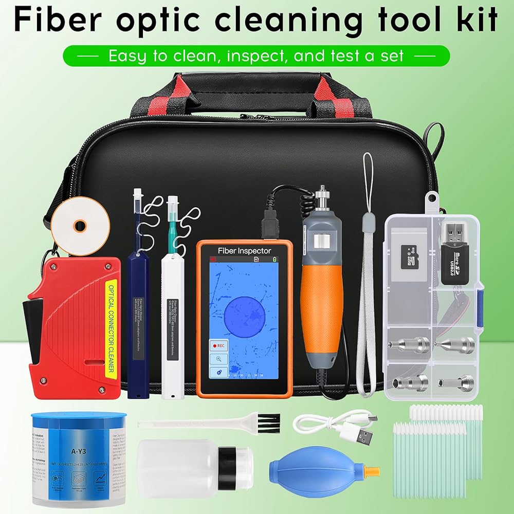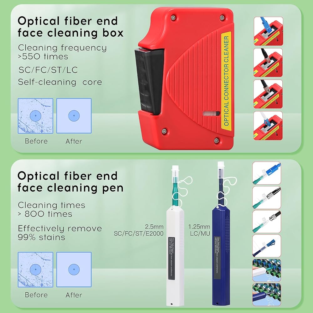 تعد أداة تنظيف الألياف / أجهزة الكشف عن الوجه النهائي من الألياف من المعدات الأساسية للحفاظ على جودة اتصالات الألياف الضوئية. تُستخدم أدوات التنظيف لإزالة ملوثات الوجه النهائي فعليًا، بينما تعرض أجهزة الكشف عن الوجه النهائي المصنوعة من الألياف الضوئية نظافة الوجه النهائي وظروف الخدش في الوقت الفعلي من خلال التصوير المجهري عالي الطاقة. يضمن الجمع بين الاثنين خسارة منخفضة وموثوقية عالية لموصلات الألياف الضوئية، ويستخدم على نطاق واسع في عمليات الاتصالات ومراكز البيانات والسيناريوهات الأخرى