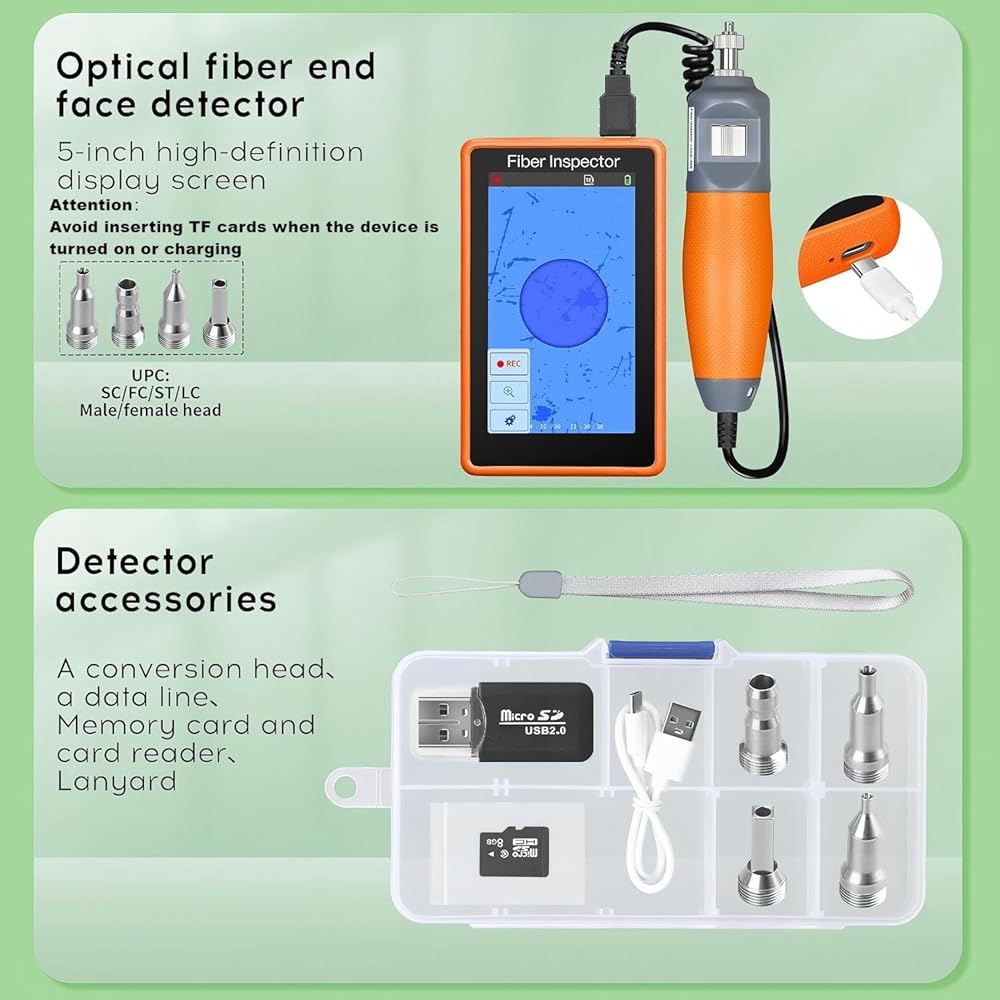 【 تطبيق واسع 】 كاشف الوجه النهائي من الألياف الضوئية مناسب للواجهات المتعددة التي تدعم رؤوس SCUPC/FCUPC/STUPC/LCUPC للذكور وSCUPC/LCUPC للإناث. وهو يدعم تسجيل معلومات القياس، وتسجيل الفيديو في الوقت الحقيقي، وخصم بطاقة TF، مما يجعله مناسبًا لتسجيل معلومات القياس، ودعم تشغيل البيانات، وتسهيل الفحص وإحصائيات البيانات