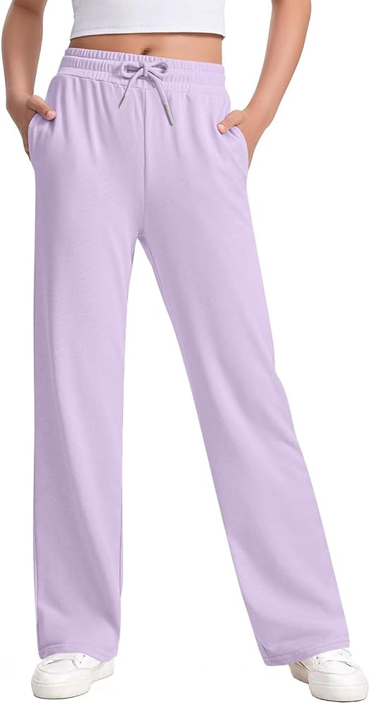 Girls Loose Straight Leg Sweatpants High Waisted Baggy Joggers with Drawstring