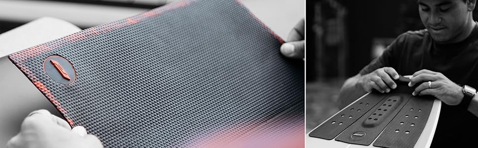• PERFORMANCE: This surfboard traction pad is 3 pieces and is designed to keep your back foot stuck to the tail of the board and give you confidence to power through turns.
