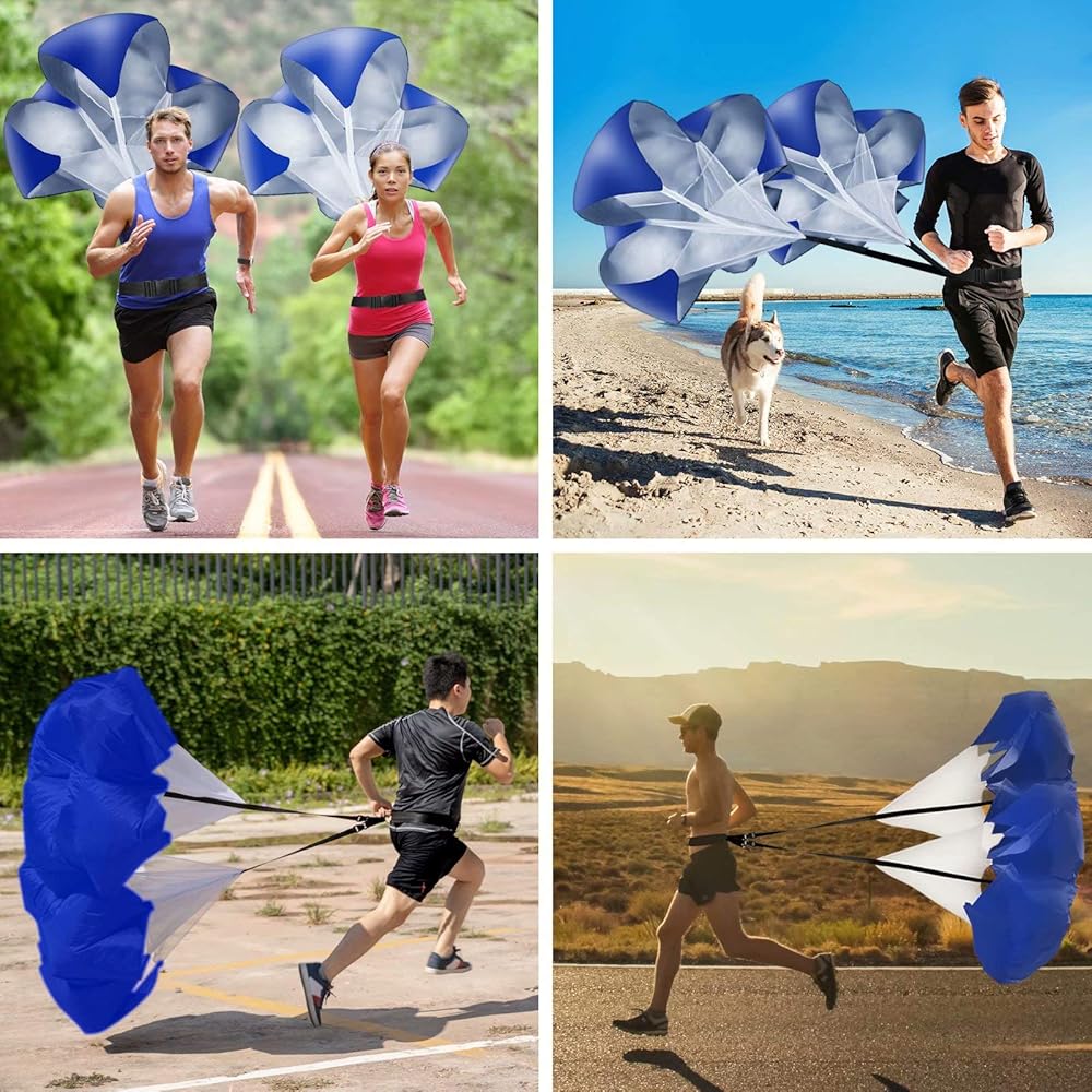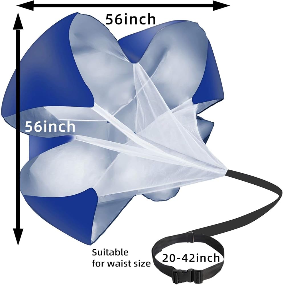 Depending on your speed, 56-inch resistance fitness parachutes will produce 25-50pounds of drag.