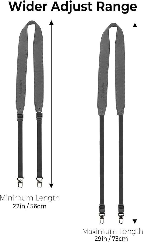 أكثر قابلية للتعديل من أحزمة التعليق القياسية - نطاق ممتد 22-29 بوصة (56-73 سم) يوفر ملاءمة أفضل لأحجام الجسم المختلفة، مقارنةً بأشرطة الرقبة بدون طيار الشائعة 23-27 بوصة.