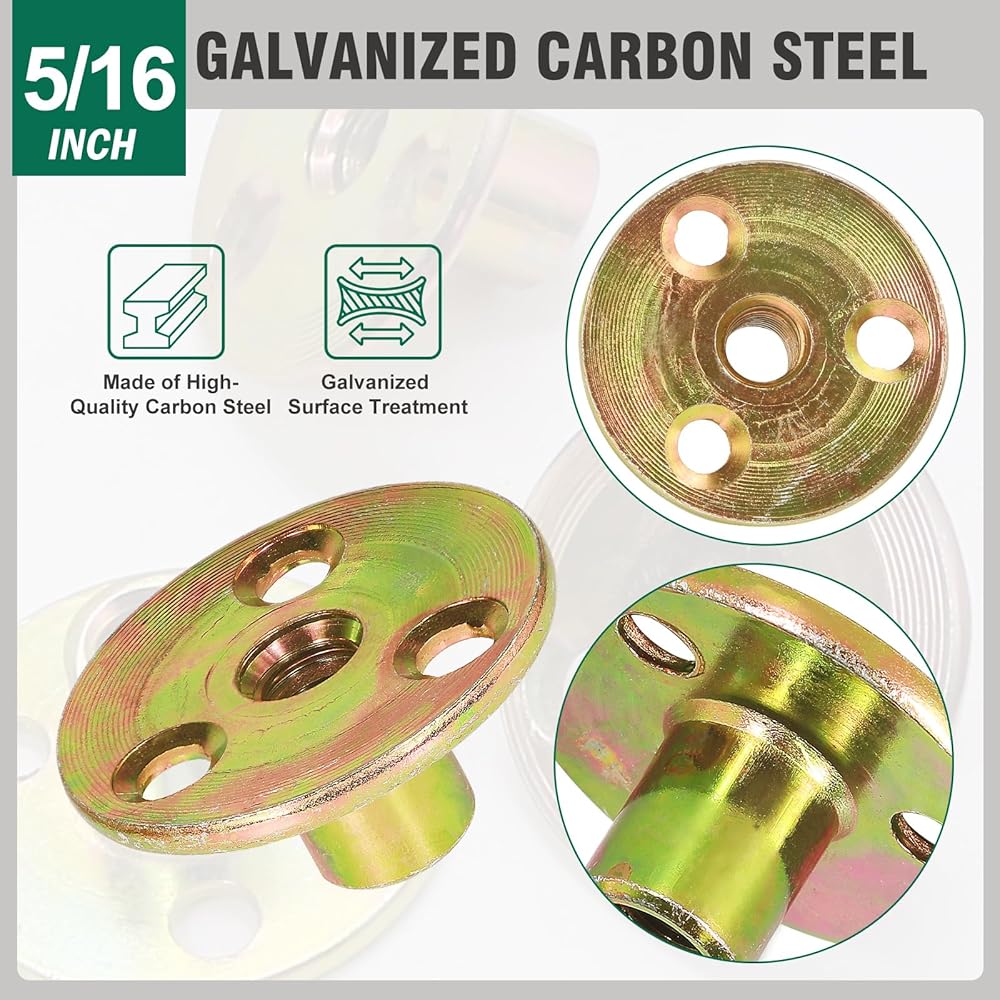 【Versatile Functionality】- Our Round Base Plate Nuts are a perfect fit for a multitude of projects. Whether you're working on furniture assembly, home improvement tasks, or bespoke creations, these nuts offer reliable performance. Their universal compatibility with standard 5/16"-18 bolts makes them an indispensable component in your toolkit.