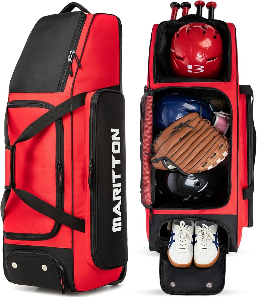 Rolling Baseball Bag with Wheels for 4 Bats – Organized, Durable, Effortless to Use