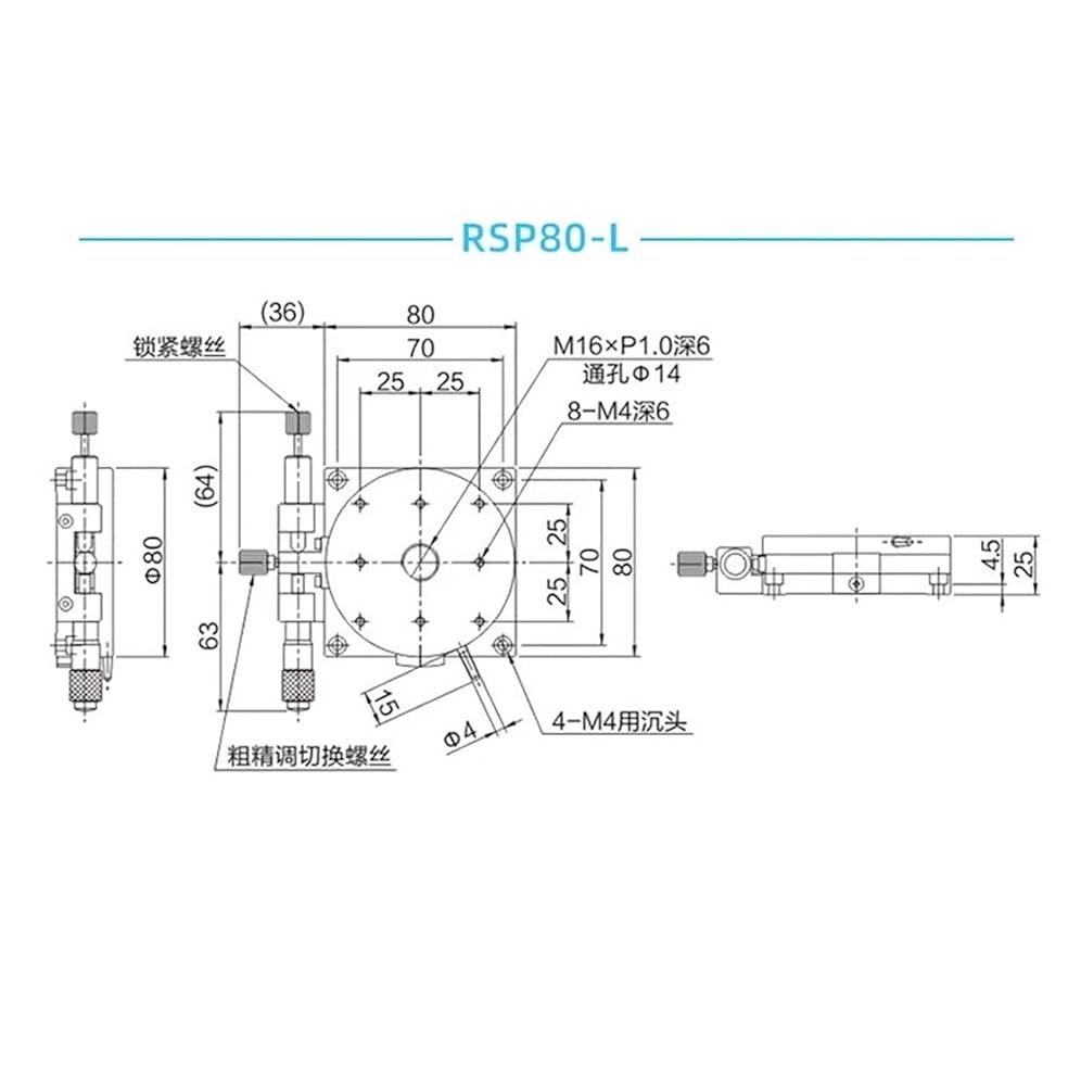360 Degree Rotary Sliding Table Table R Axis 80mm RSP80-L Angle Manual Adjustment Platform Optical Micrometer