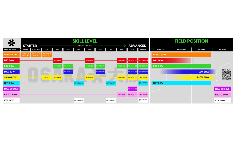 Advanced Low Groove Profile (XTRr bow): Designed for penalty corner specialists, the Low Groove XTR is a unique member of the Low Bow family. This bow features a groove in the shaft, delivering precise ball control and accuracy when flicking the ball during penalty corners.