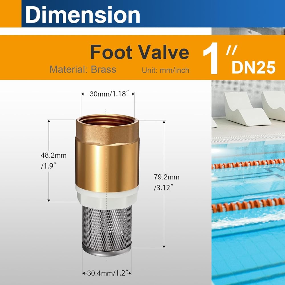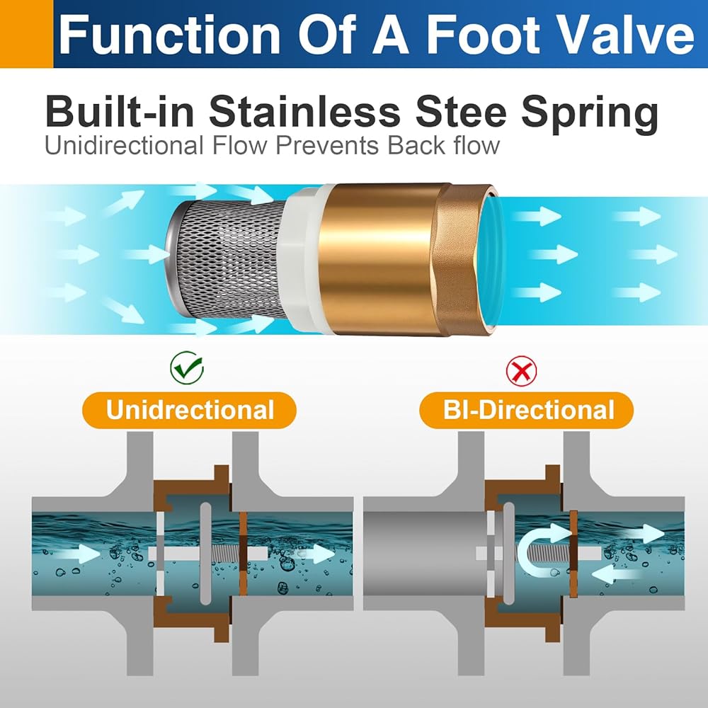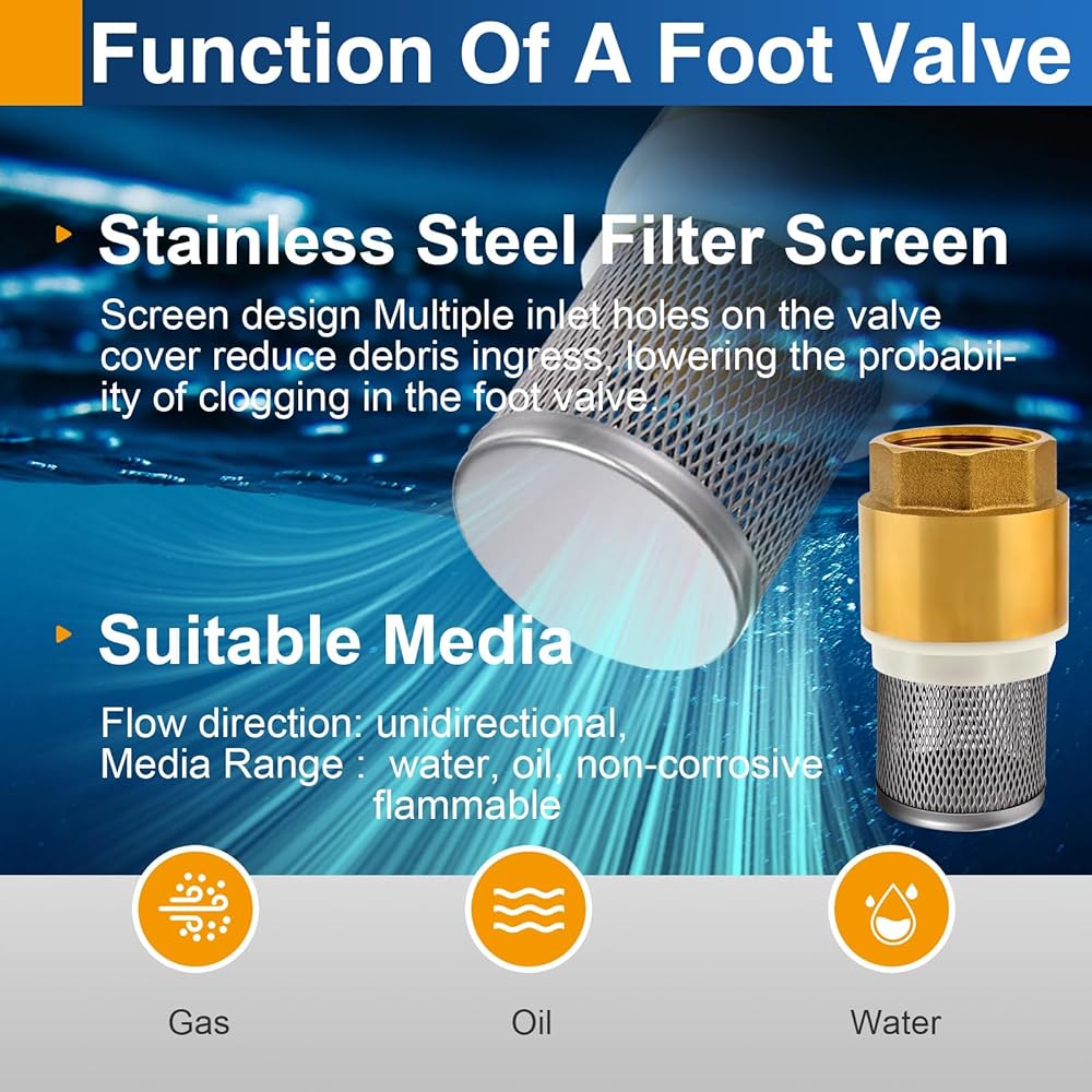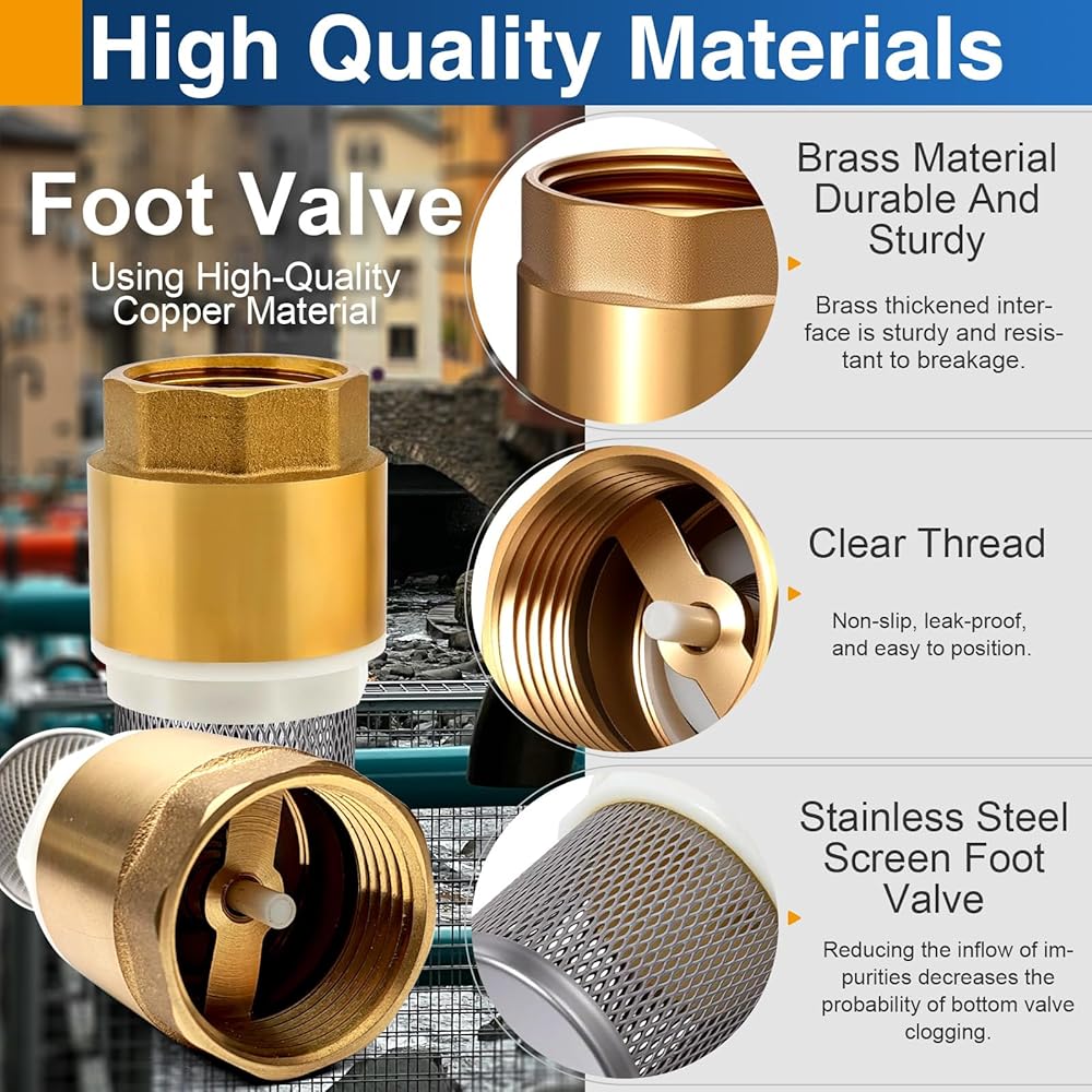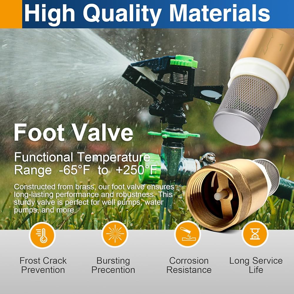 Premium Durability: Built from premium, solid low-lead brass, this heavy-duty foot valve ensures exceptional strength, robustness, and long-lasting performance for well pumps, water pumps, and demanding applications