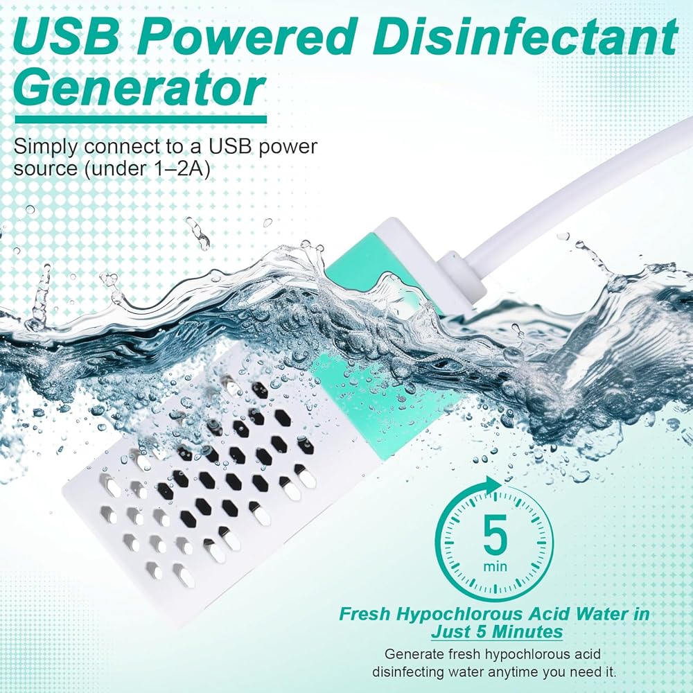 This solution is great for a variety of applications around the home. It's ideal for disinfecting countertops, sinks, and pet areas, as well as for cleaning bathroom surfaces and toys. Whether you need to sanitize a small area or clean multiple surfaces, this generator provides a convenient option.