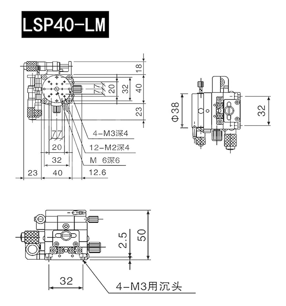 XYR Axis 40mm Micrometer Manual Trimming Platform Translation Table and Rotary Table Cross Rail LSP40-LM