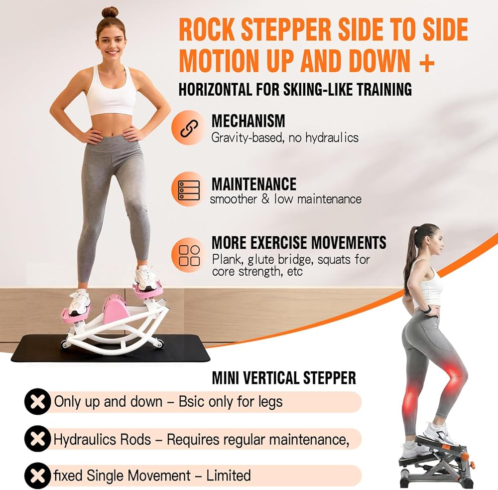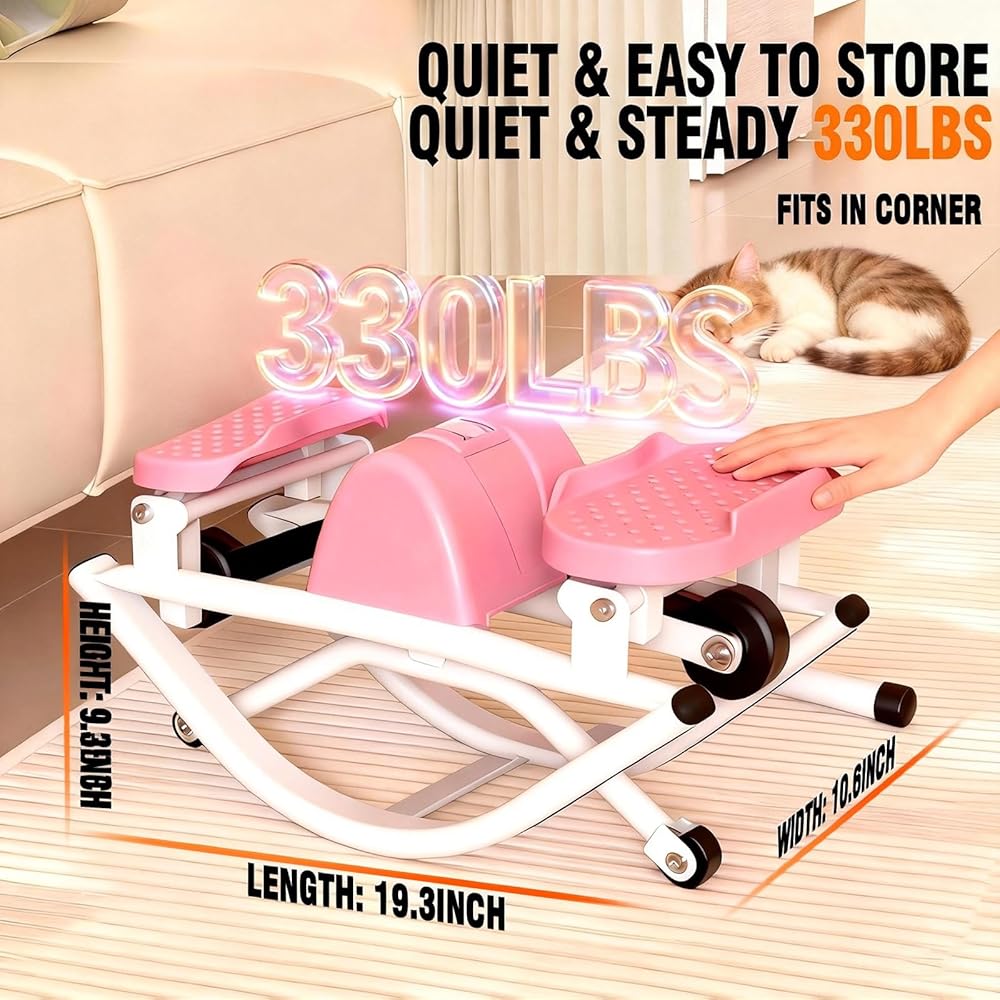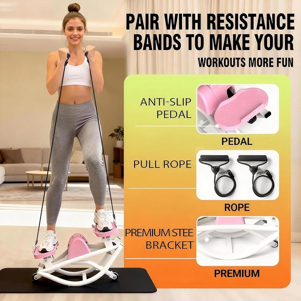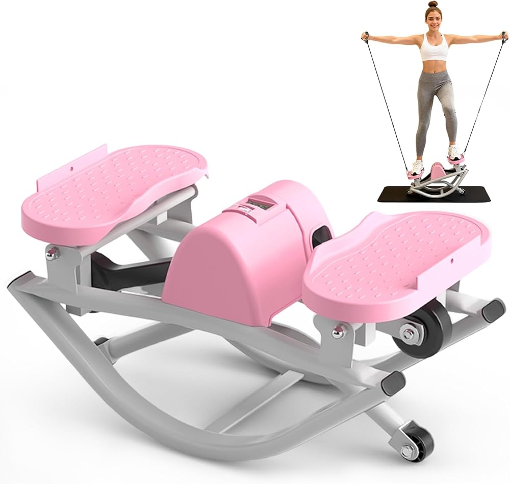جهاز روك ستيبر للتمرين في المنزل، جهاز ستيبر هزاز جانبي مع عداد رقمي وأشرطة مقاومة، سعة وزن 330 رطل وتأثير منخفض، جهاز تزلج لكامل الجسم (وردي)
